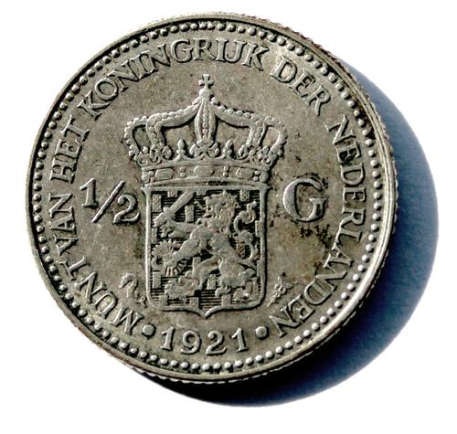 Zilveren Nederlandse betaalmunt, ½ Gulden, 1921