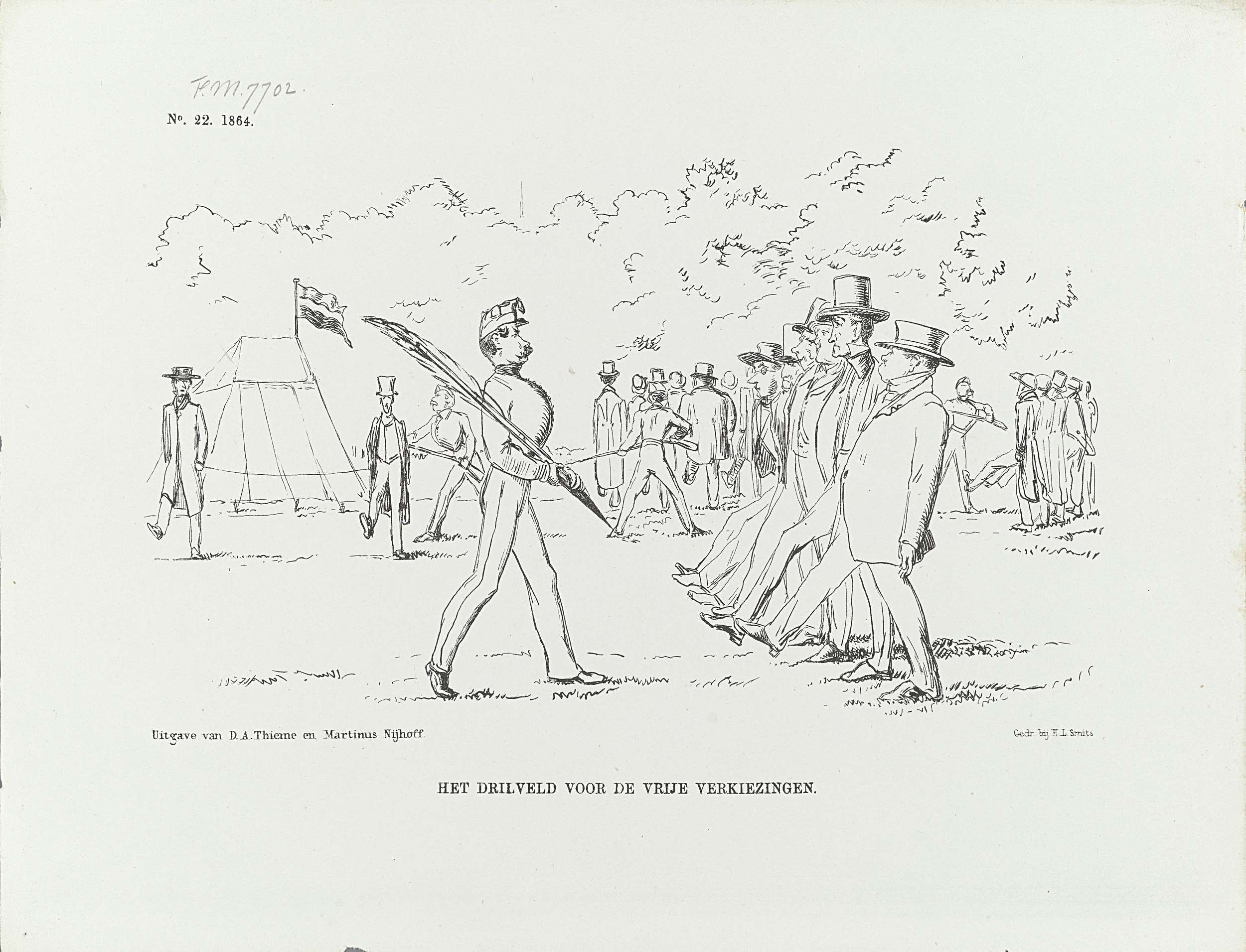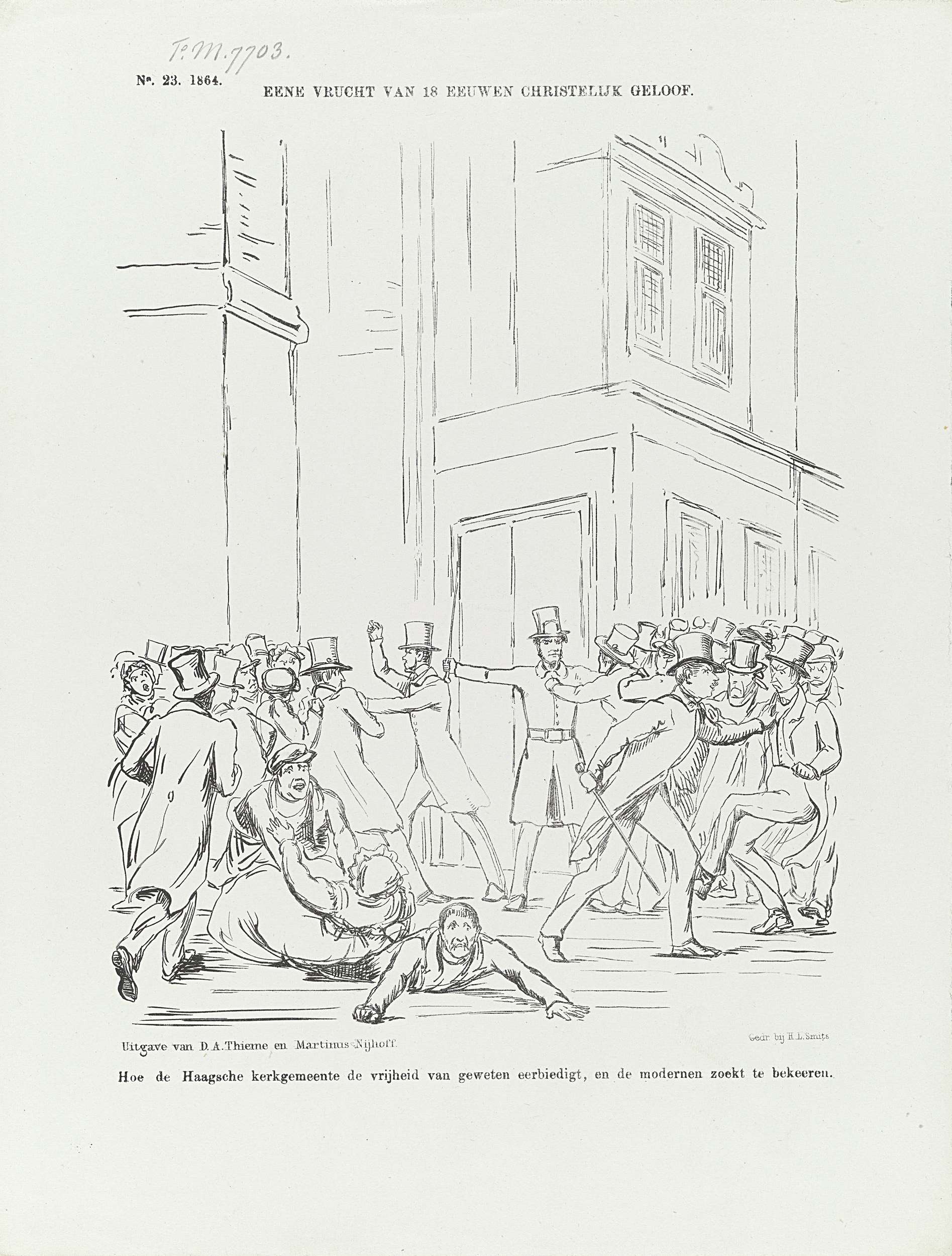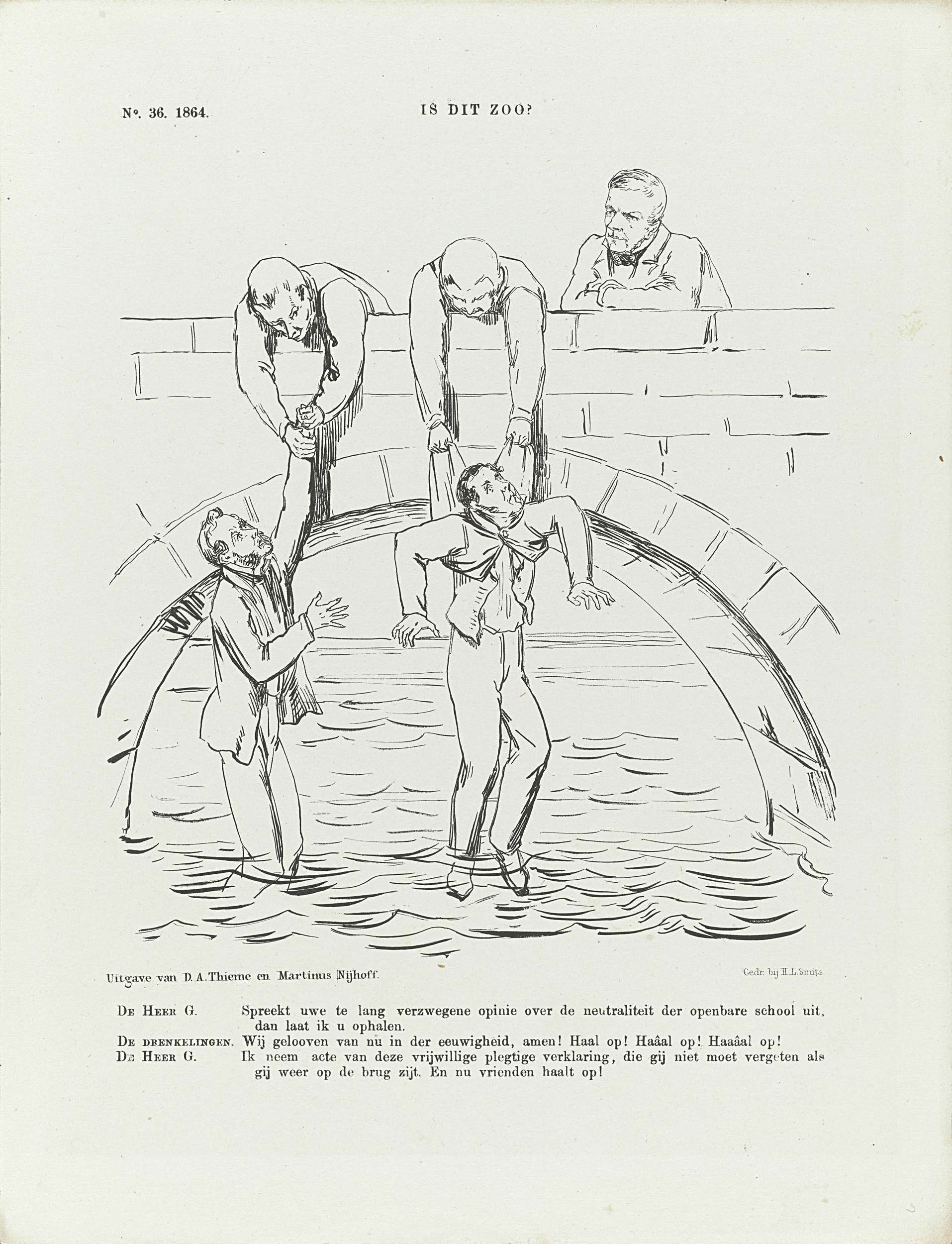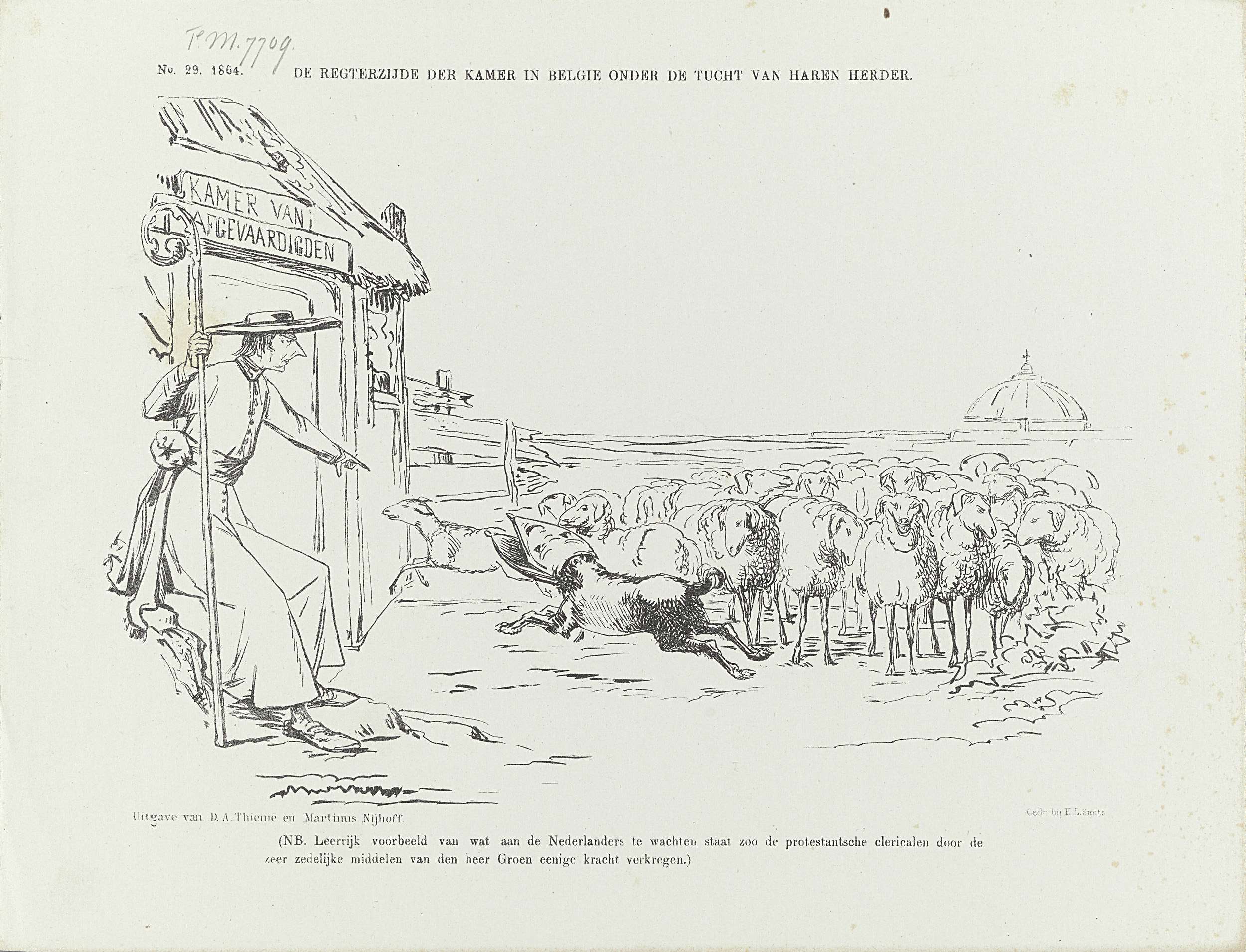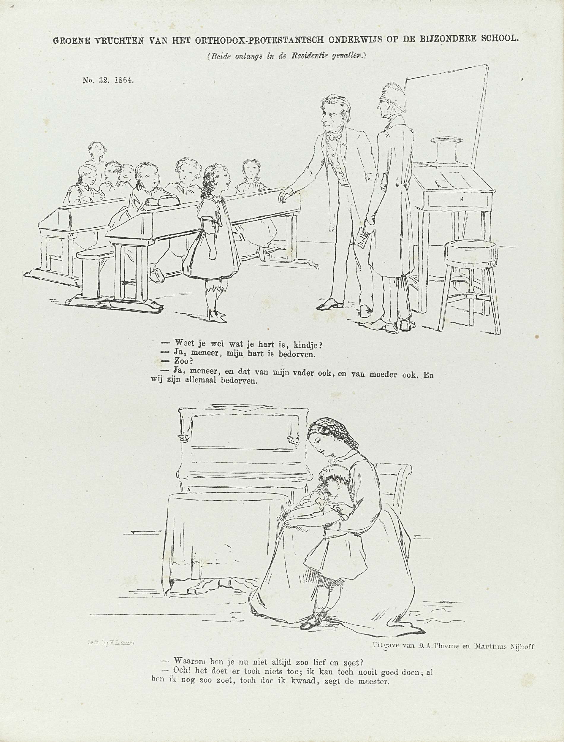 Spotprent op het orthodox-protestants onderwijs, 1864