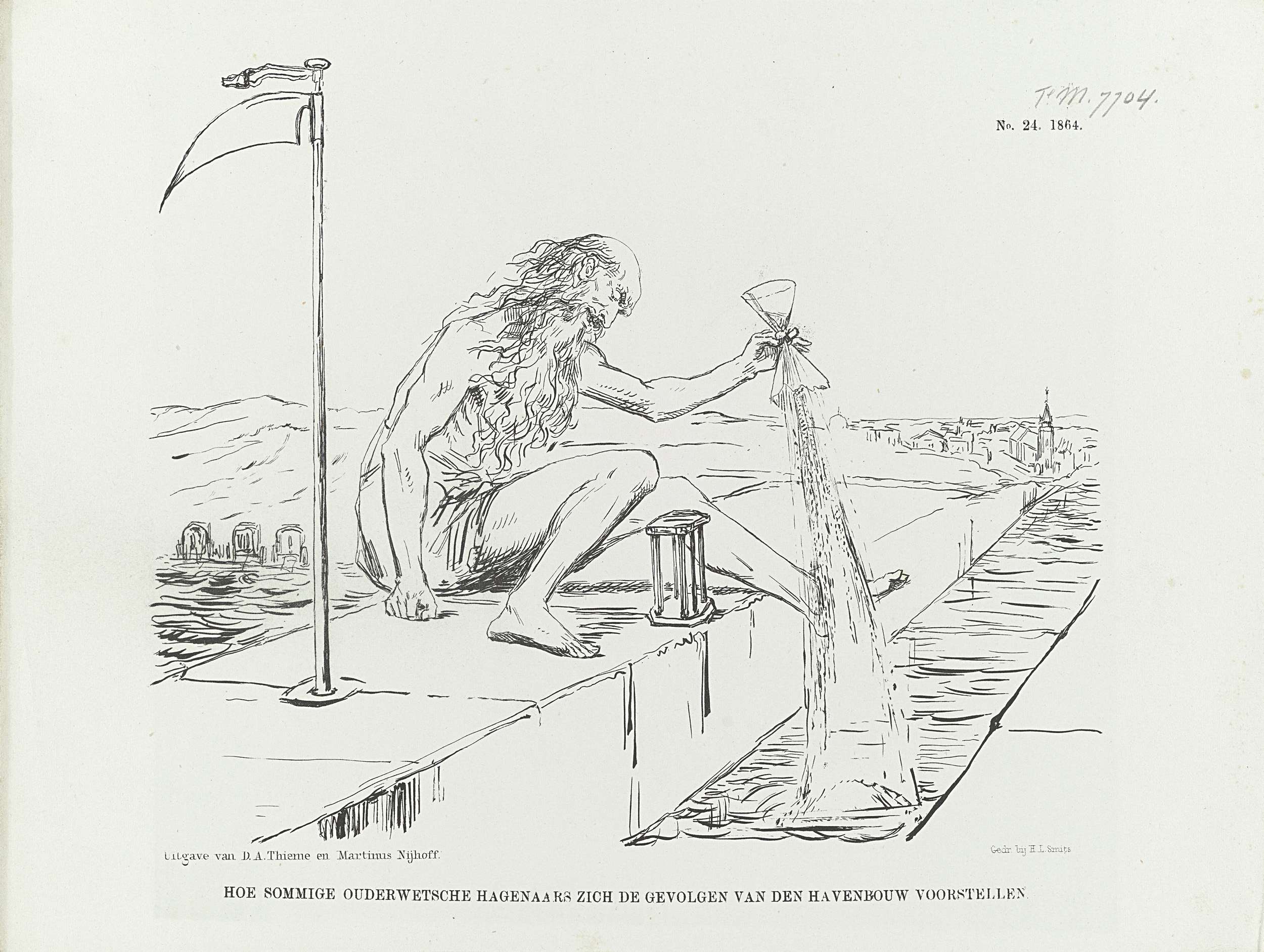 Spotprent op de plannen voor havenbouw in Den Haag, ...