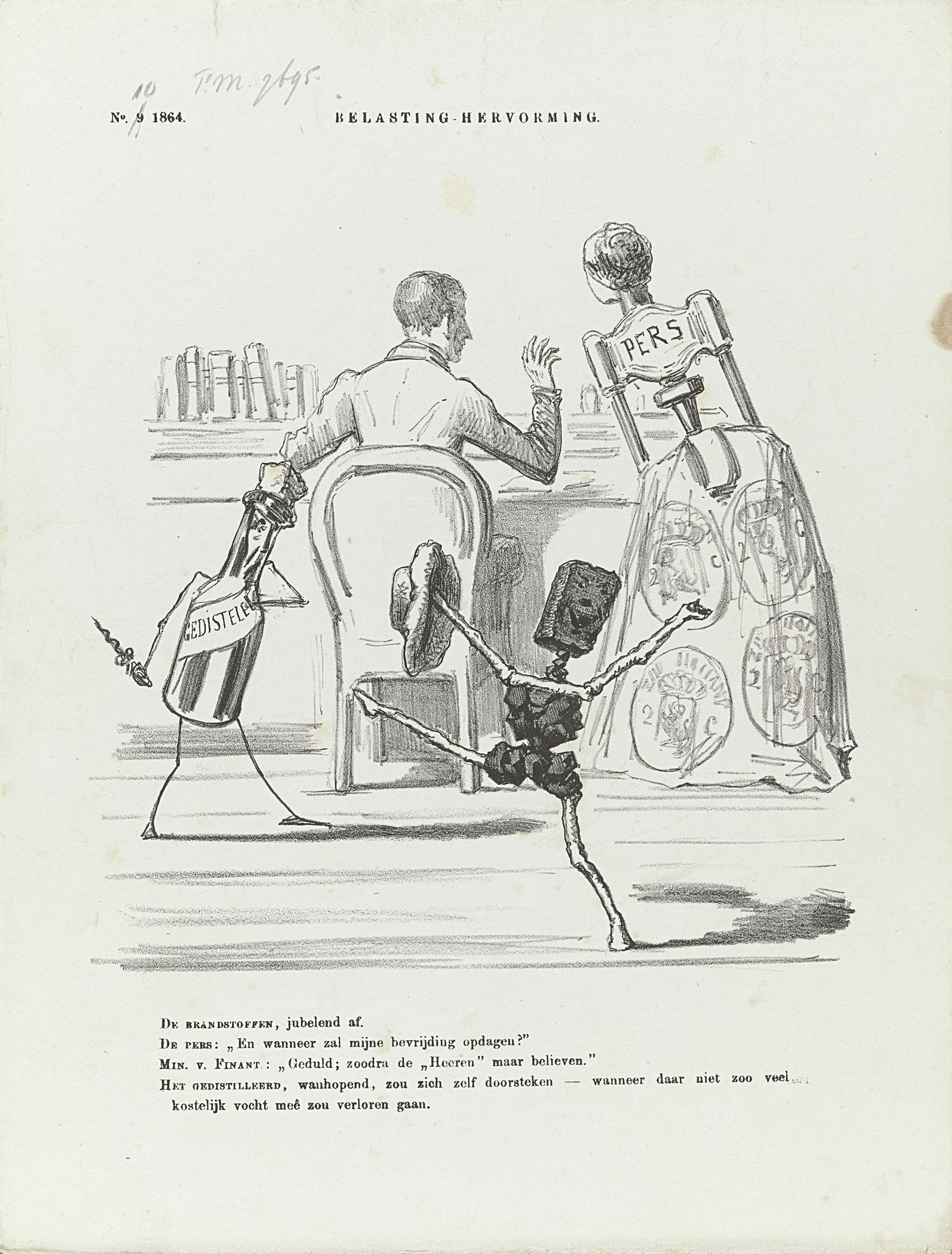 Spotprent op de artikelen van prof. Vreede tegen pri...