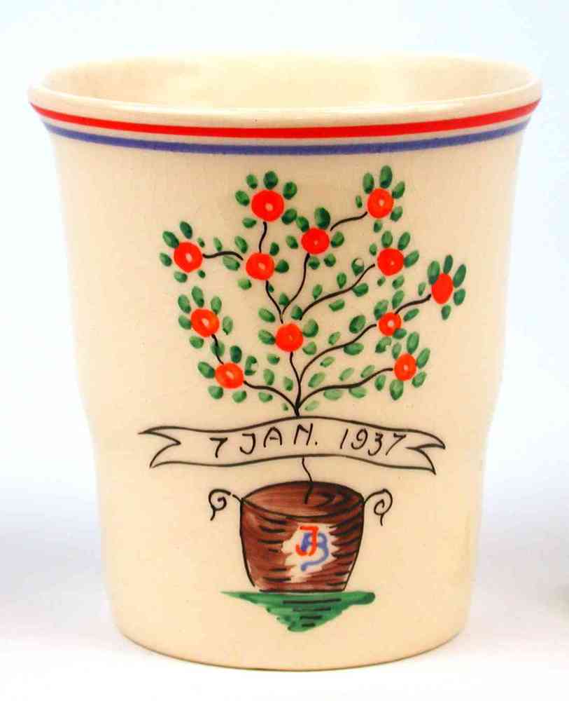 herinneringsbeker van keramiek t.g.v. huwelijk Julia...