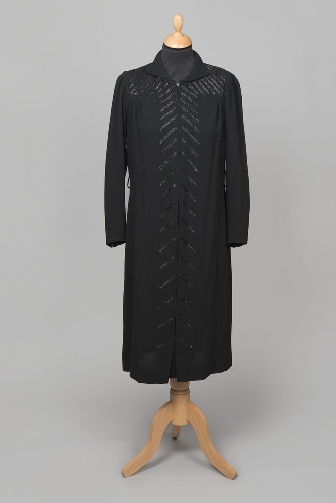 Jurk van zwarte wollen crêpe