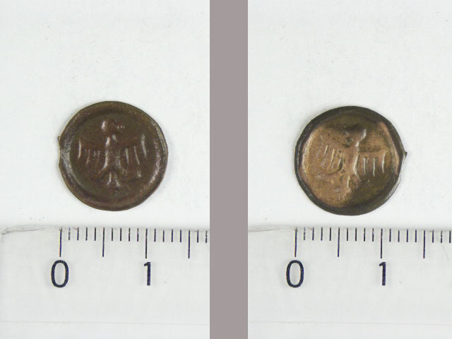 Plak met op de voorzijde een adelaar met rondom pare...