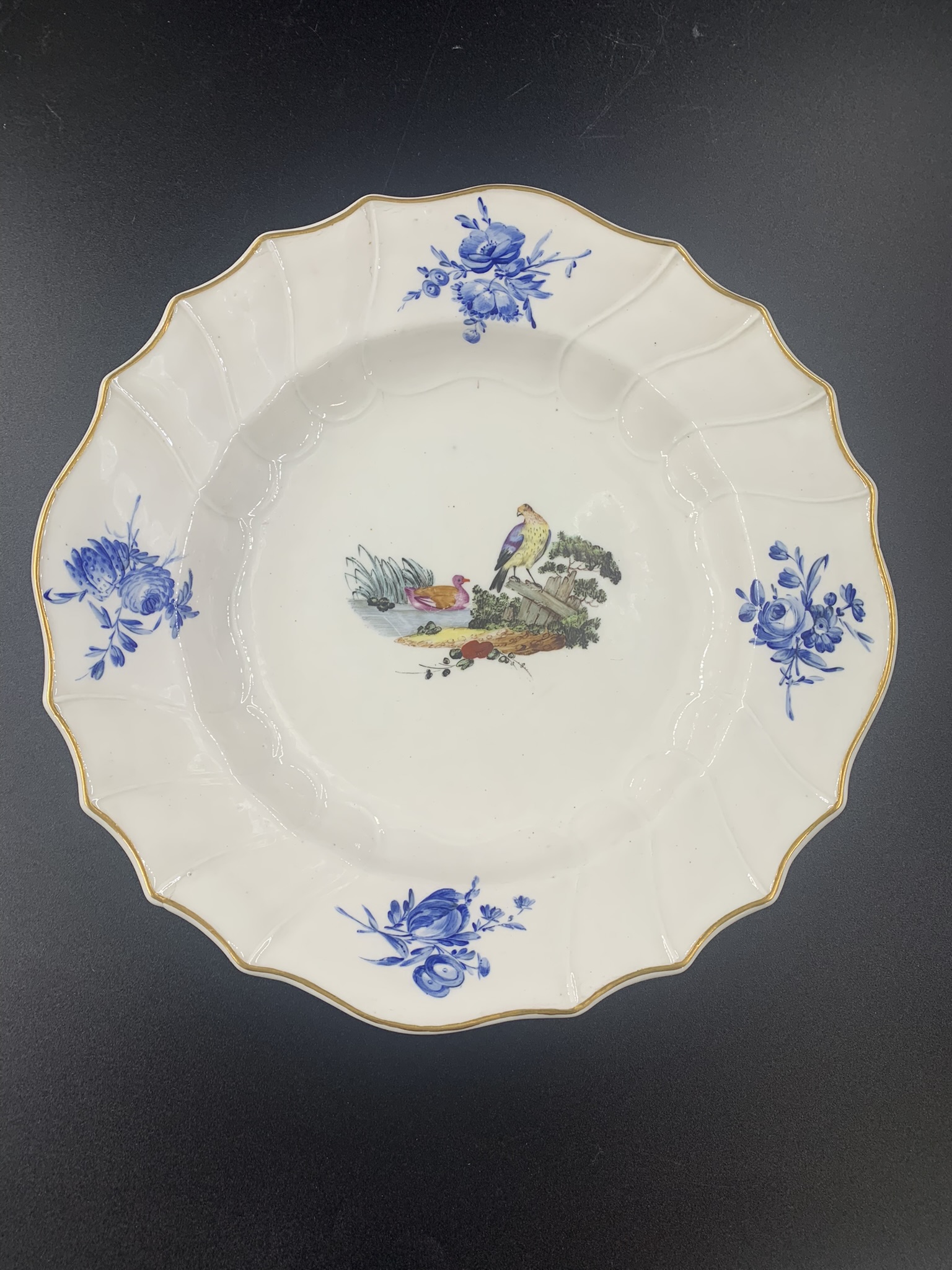 Groot plat bord met geschulpte rand en vogeldecoratie