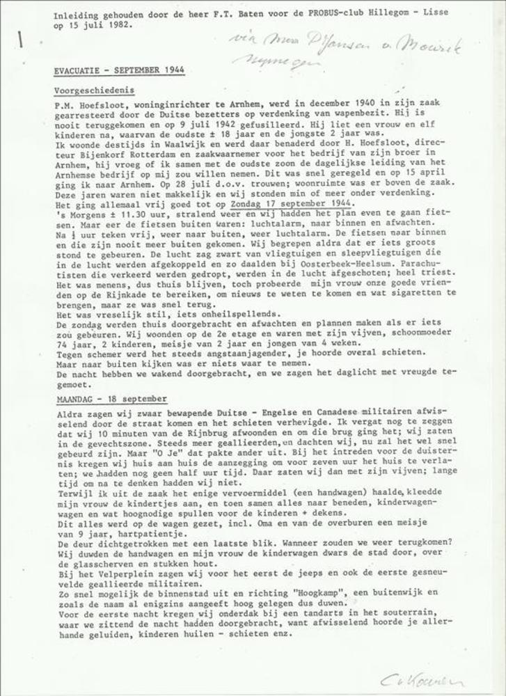 Verslag van de evacuatie september 1944 - door F.T. ...