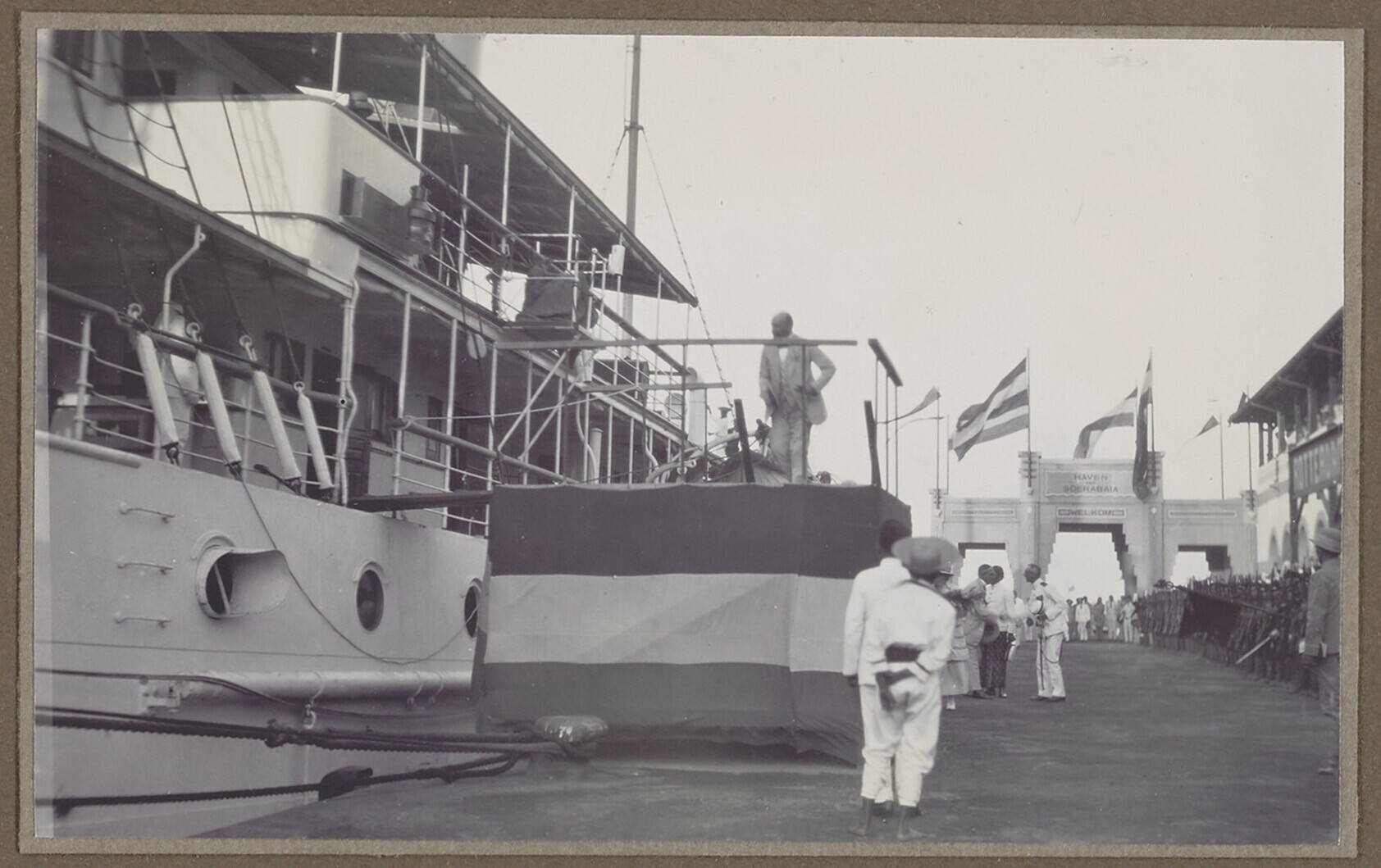 Governor Fock on a scaffolding in het Surabaya harbour