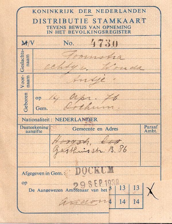 Distributiestamkaart 1e model, Toonstra, A., echtgen...