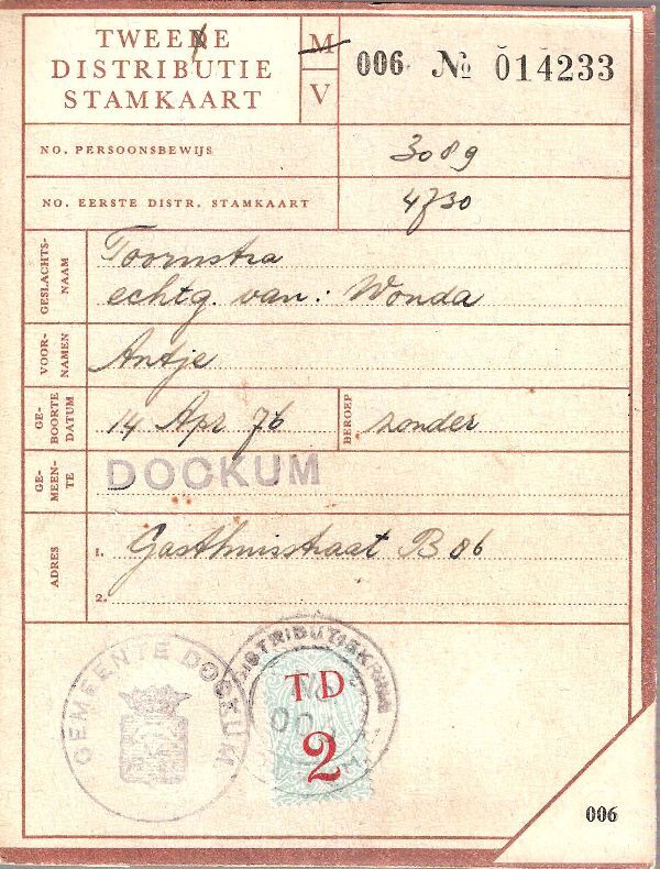 Distributiestamkaart 2e model, Toornstra, A., echtge...