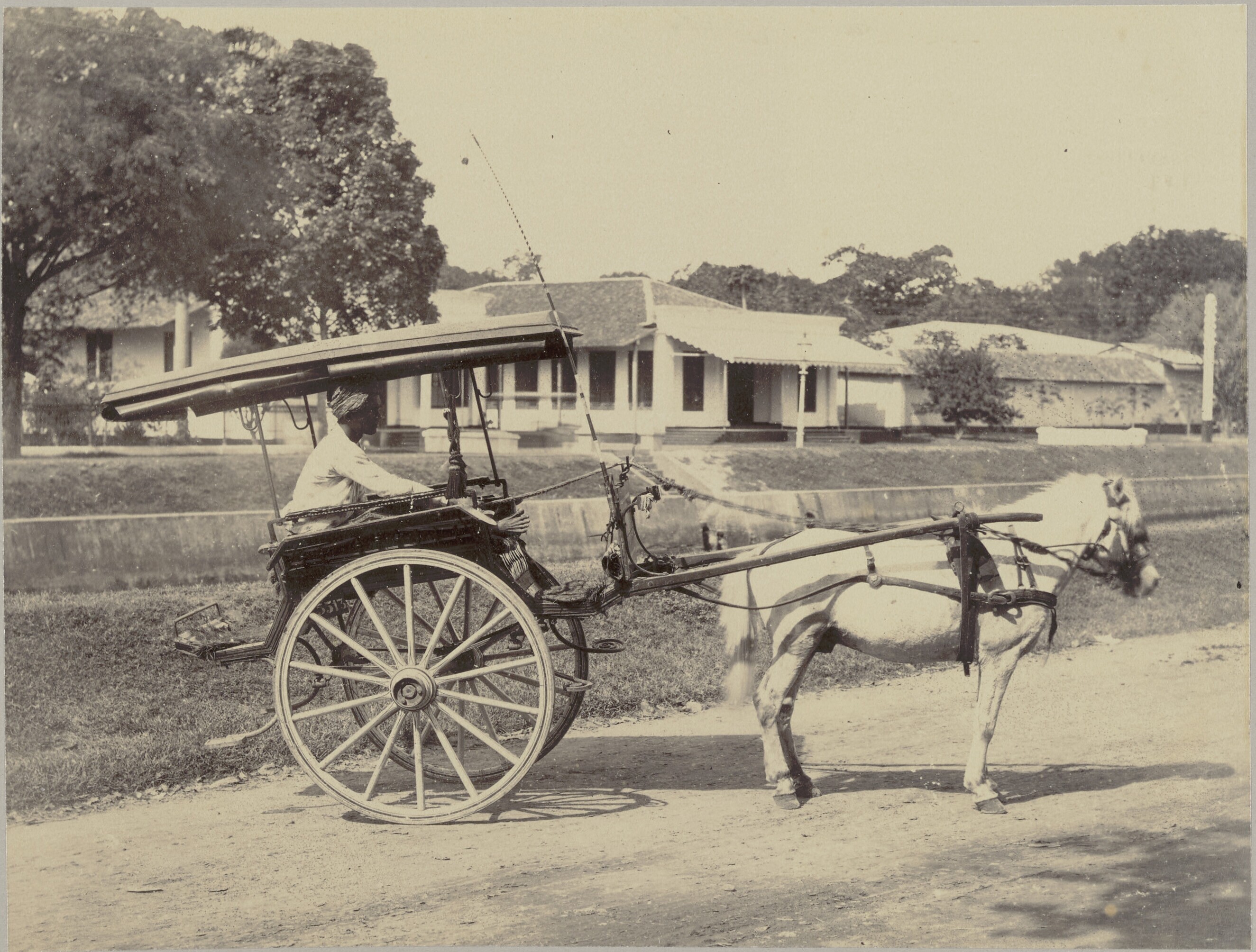 Een huurrijtuig langs de Molenvliet, Batavia