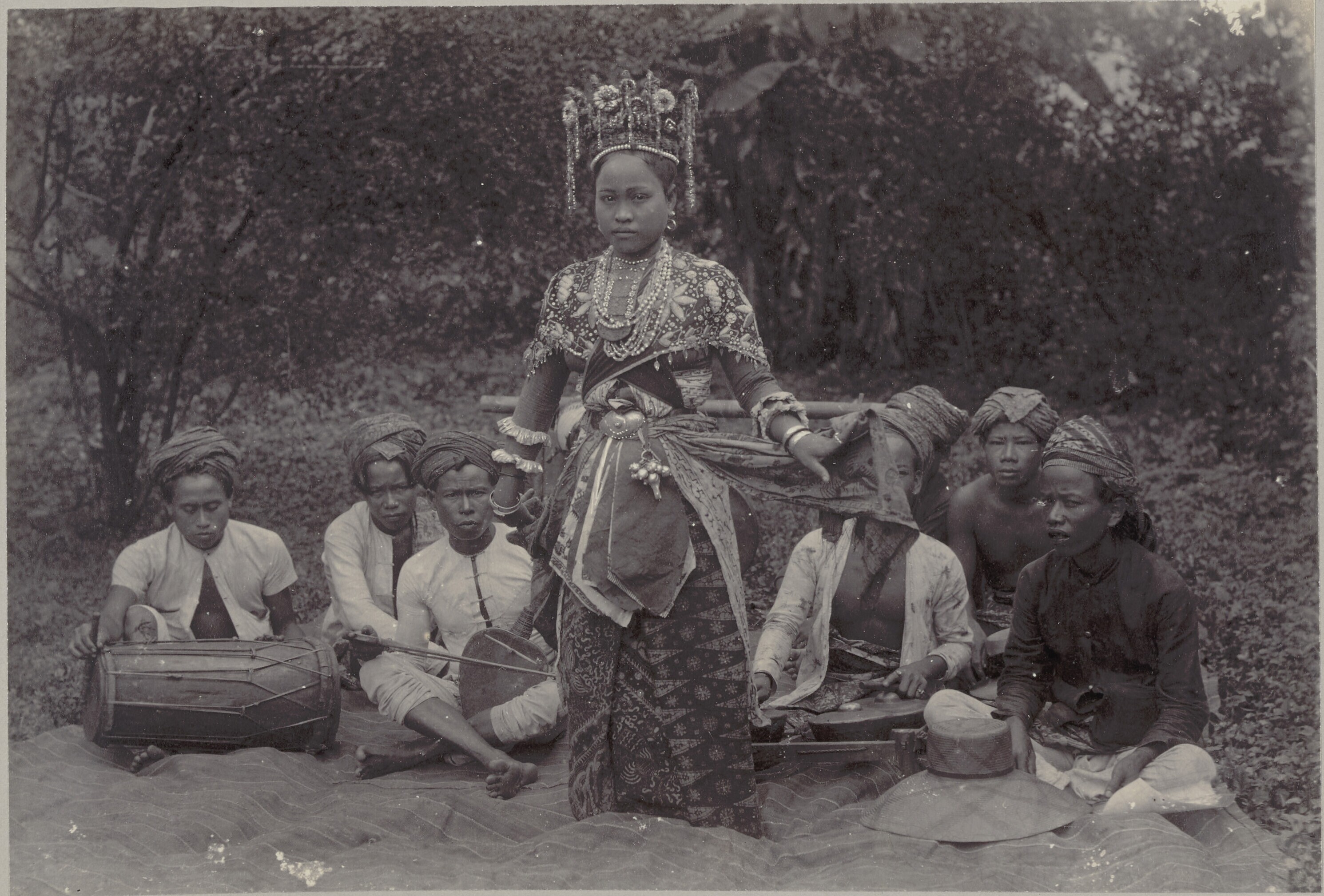 Een ronggeng danseres met muzikanten in Batavia