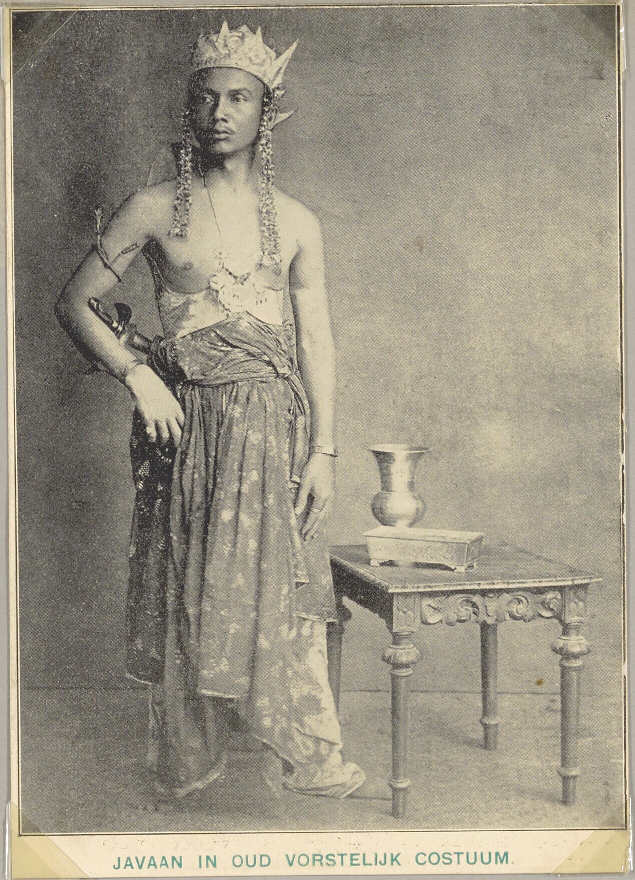Studioportret van een als een vorst geklede Javaanse...