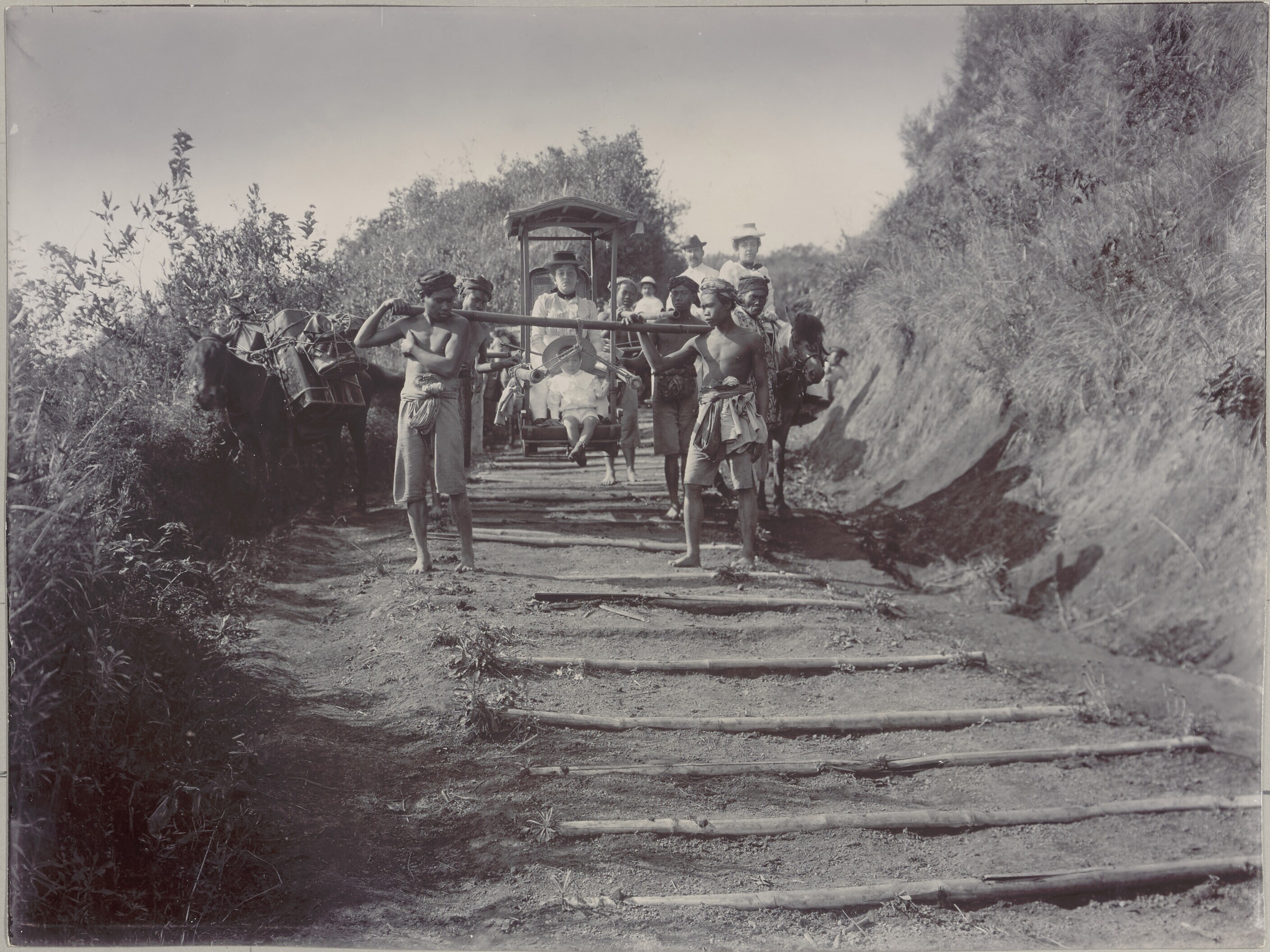 Een Armeense familie per draagstoel op weg naar Tosari