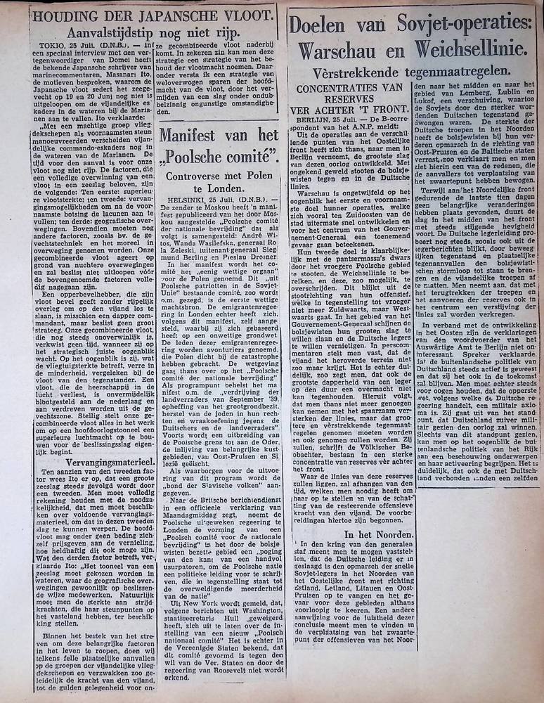 Een aantal krantenknipsels uit de oorlogsperiode 194...