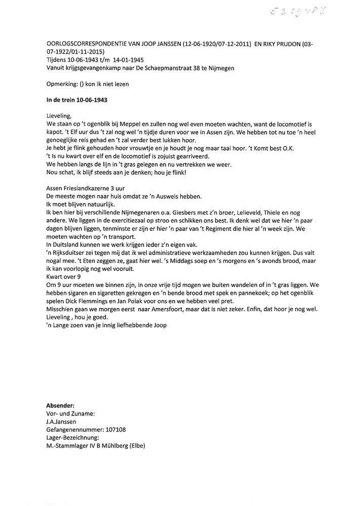 Briefkaart ( brieven) voor Riky Prudon te Nijmegen.