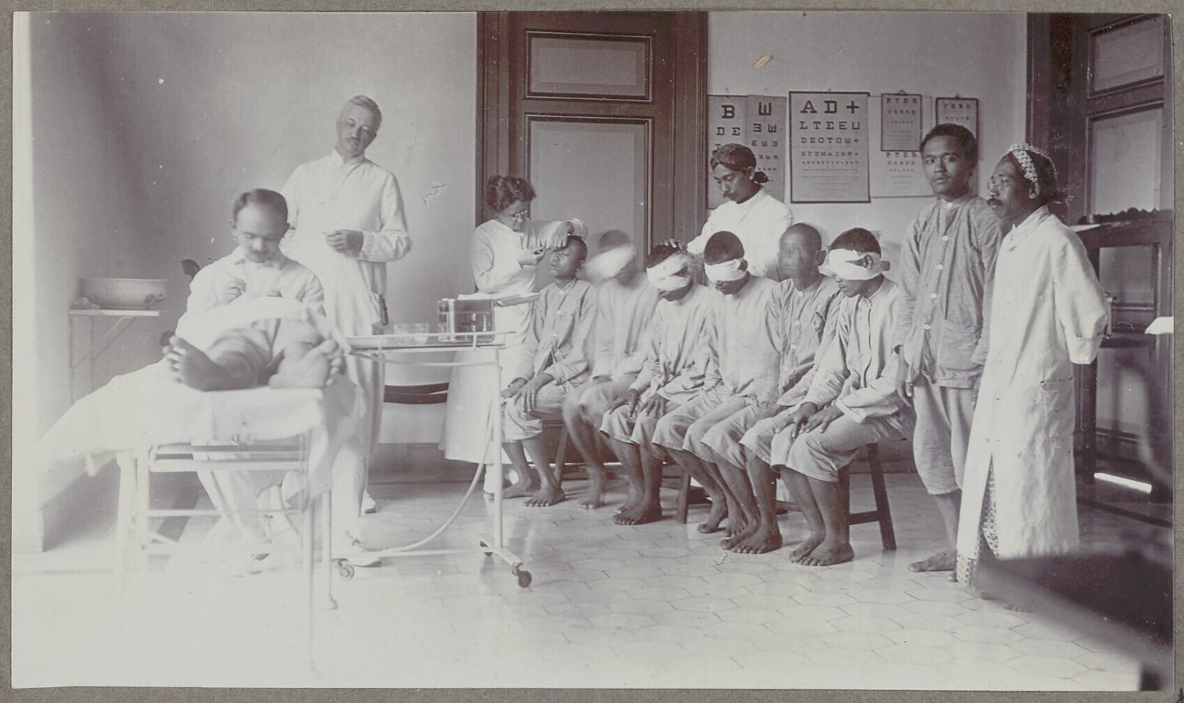 The operating room with opthalmologists and patients...