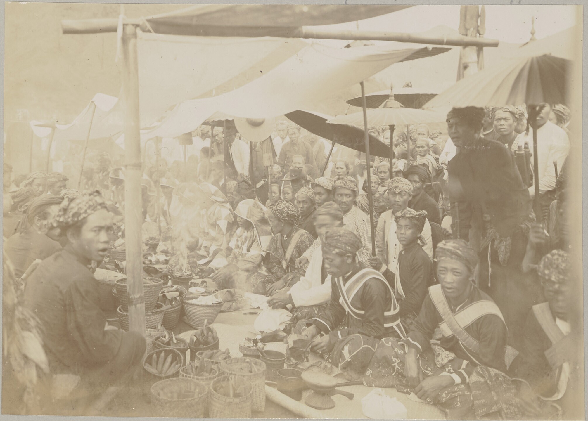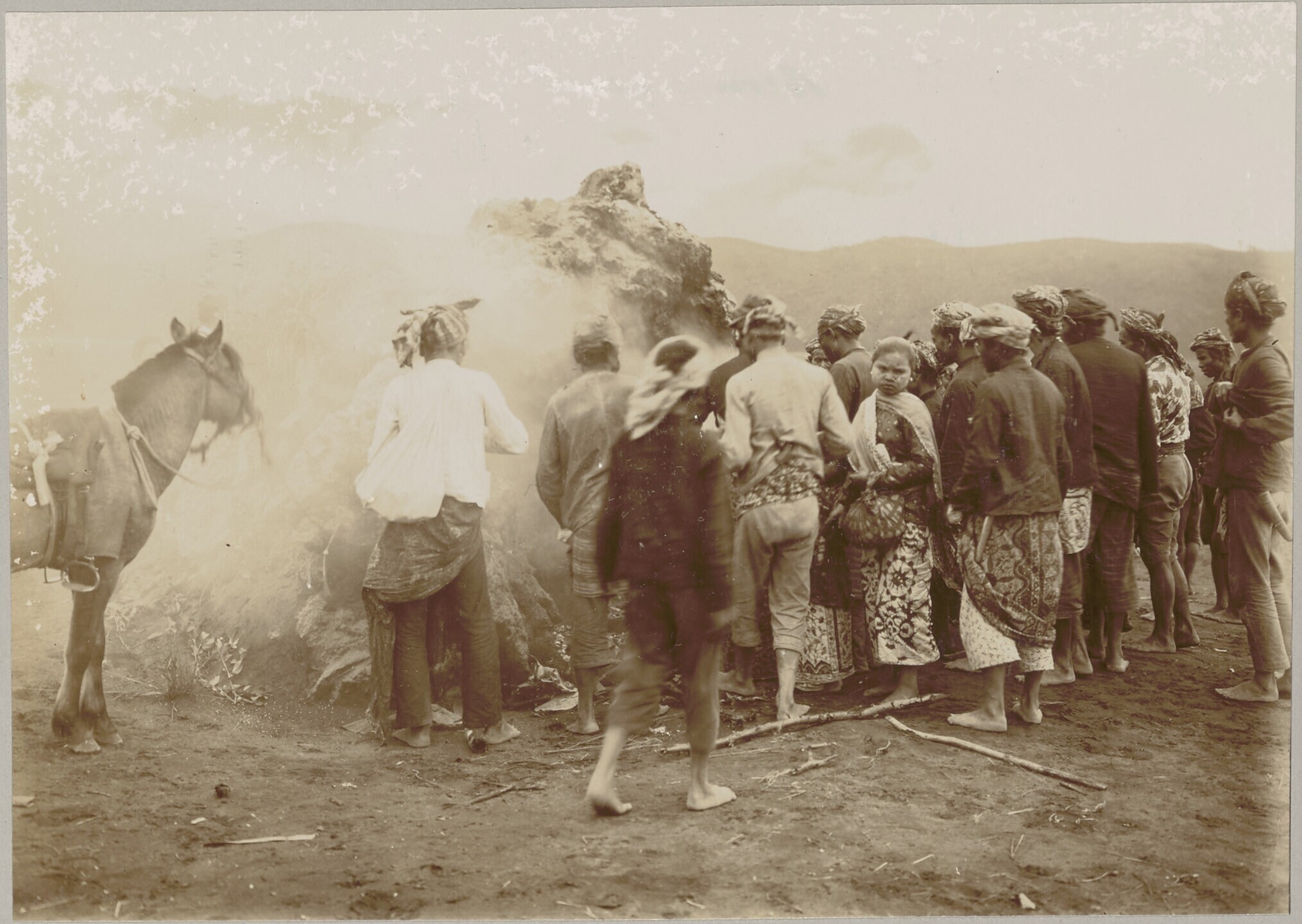 Javanen verzamelen zich tijdens het Bromofeest rond ...