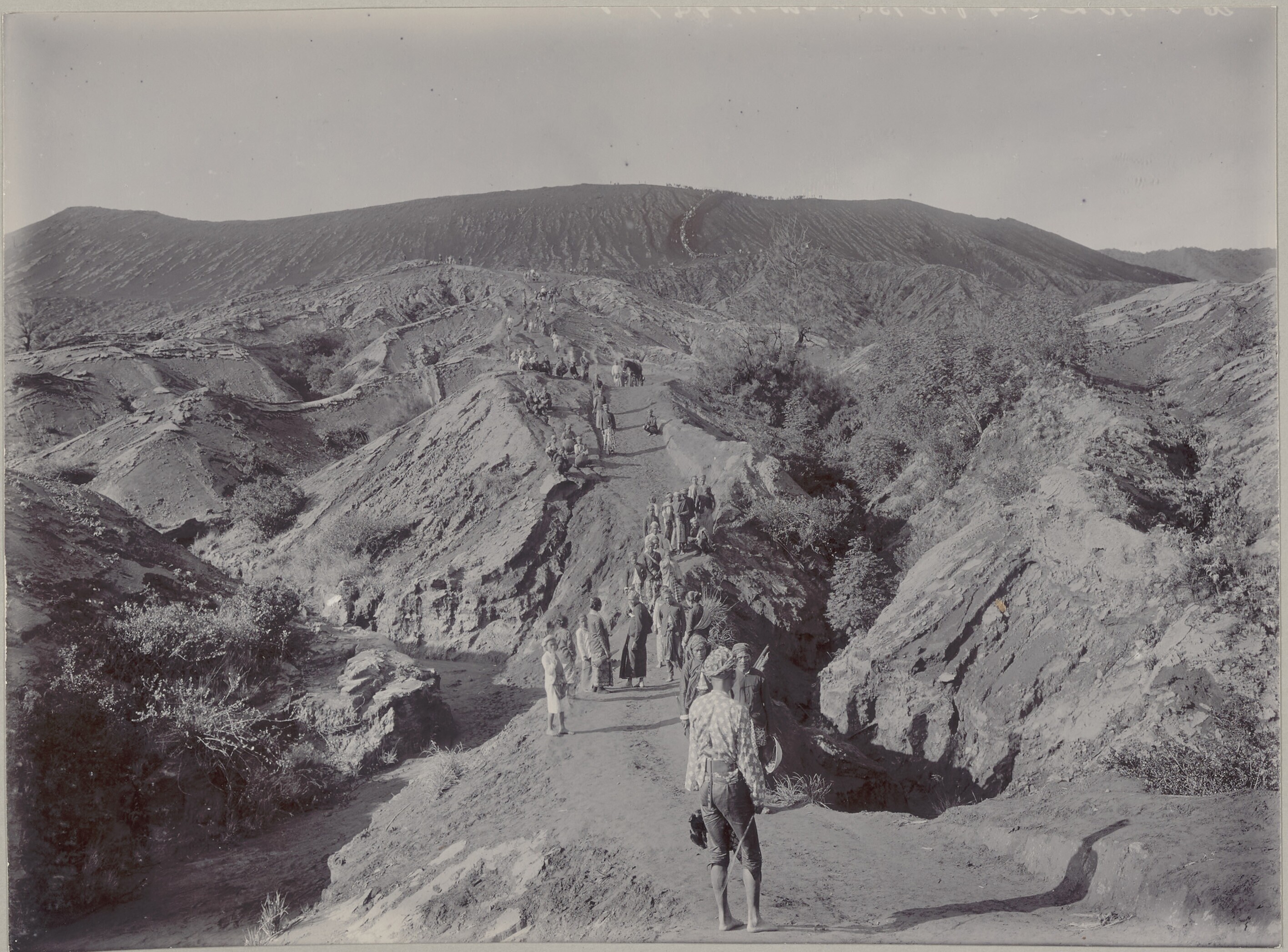 Mensen op pad langs de lavahellingen op de vulkaan B...