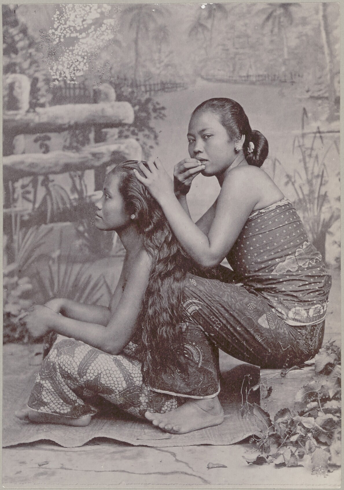 Studioportret van twee Javaanse mannen