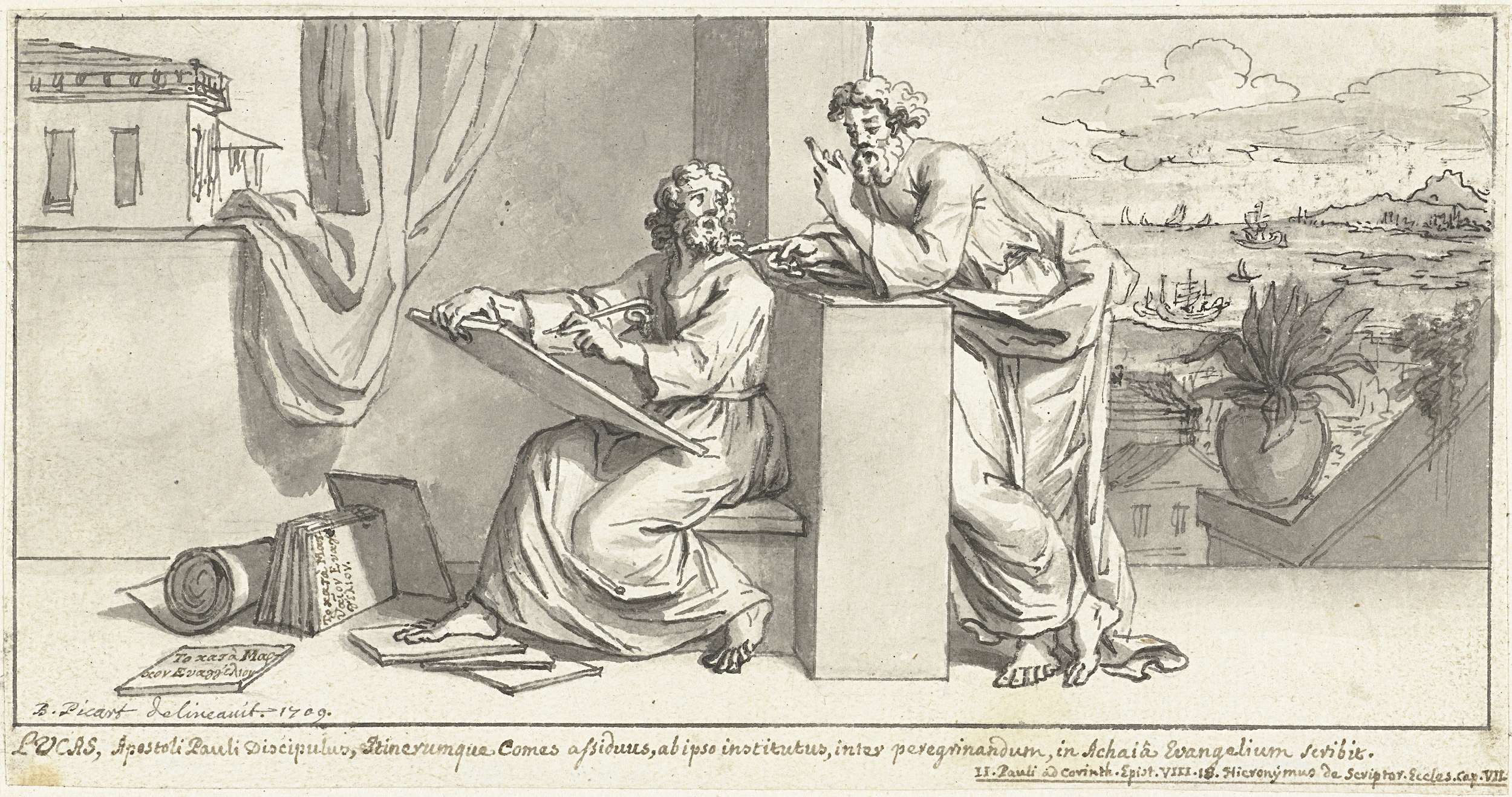 De evangelist Lukas wordt geïnspireerd door de apost...
