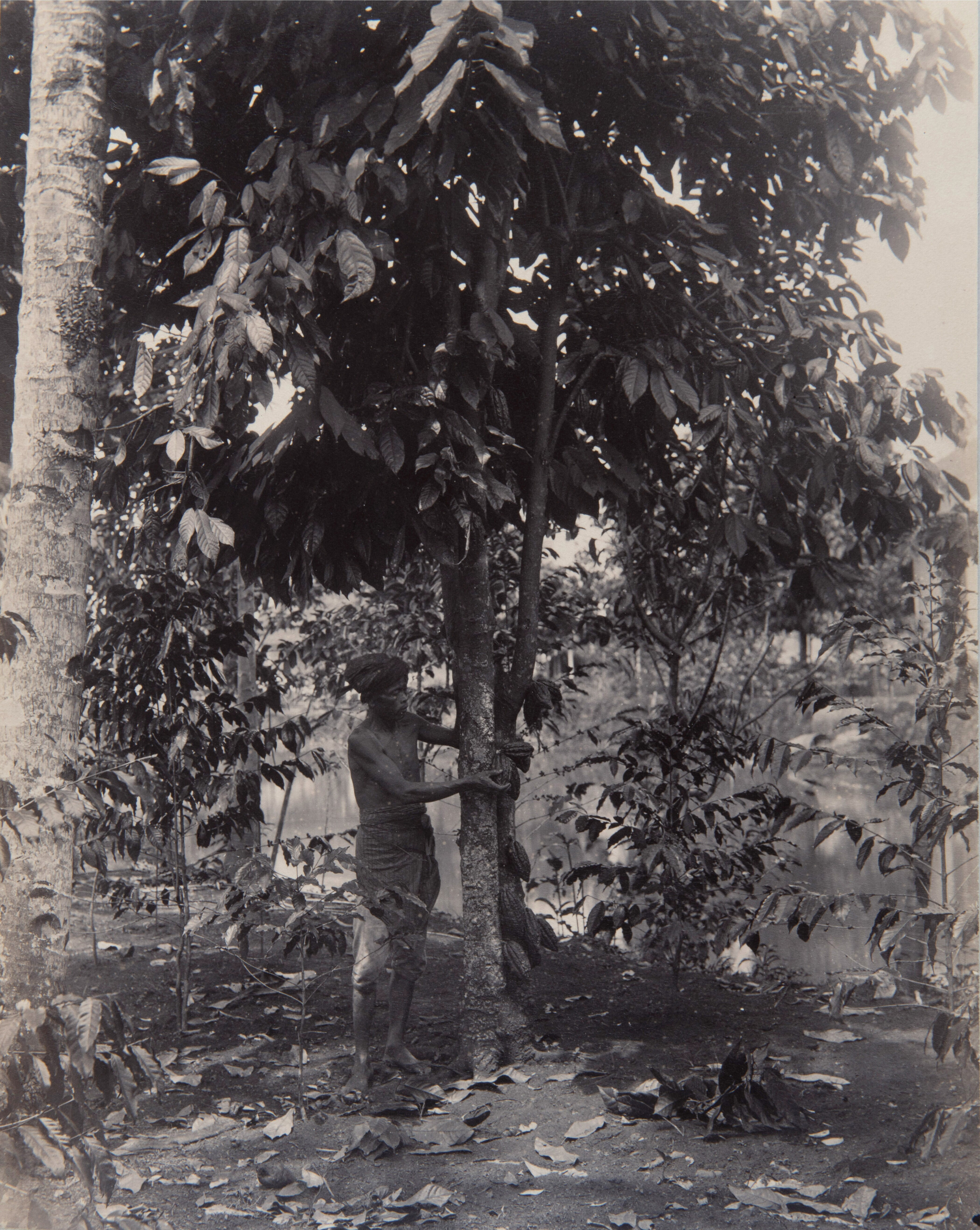 Cacaovruchten worden geplukt van een cacaoboom, Java