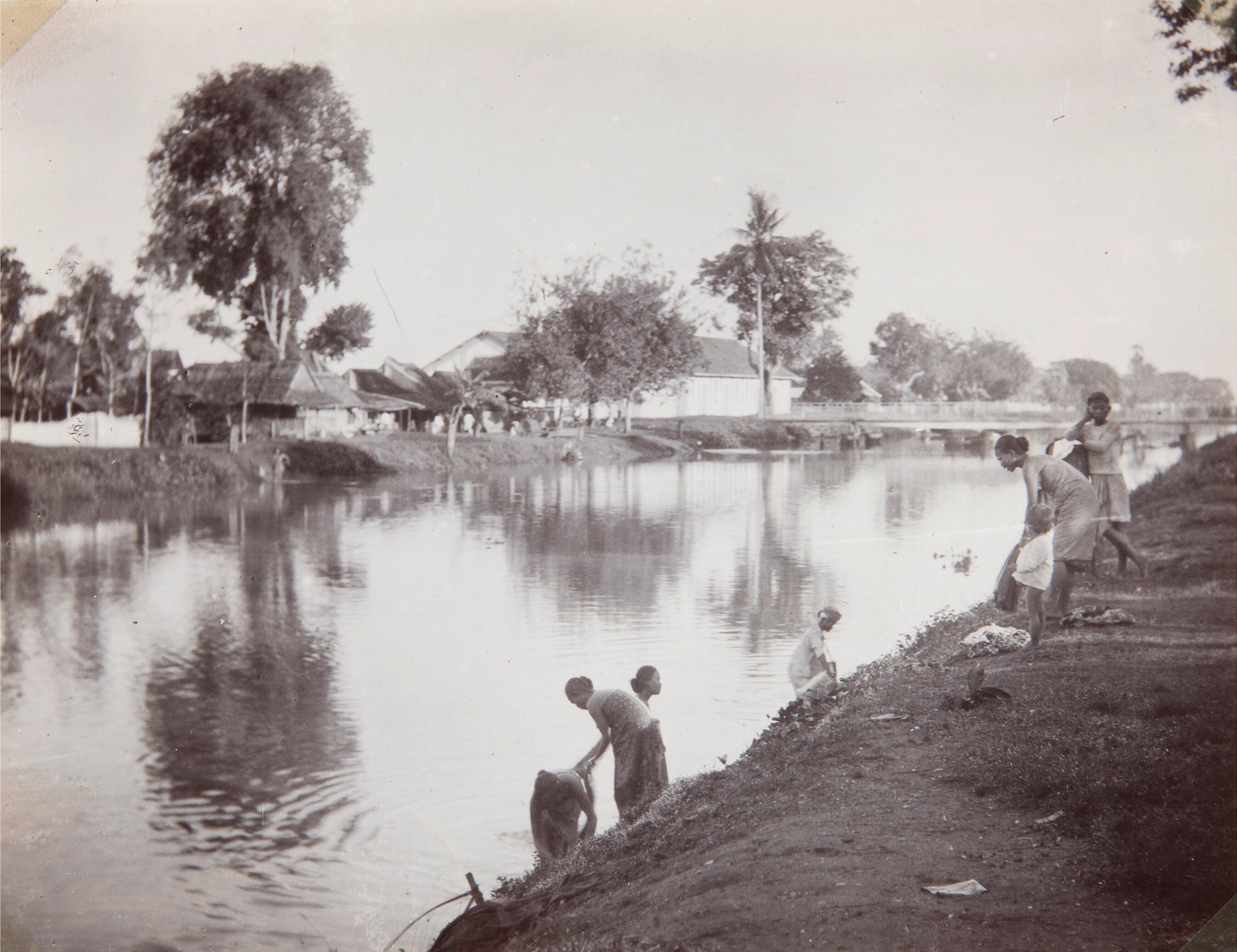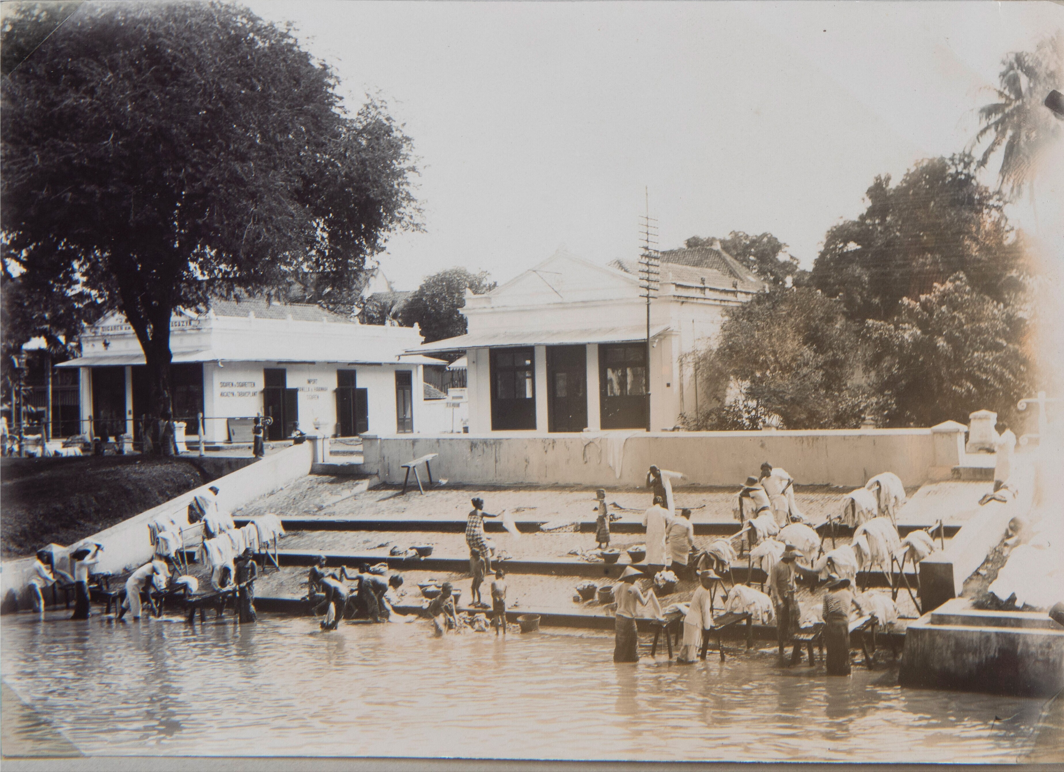 Een wasplaats aan de rivier, mogelijk Soerabaja