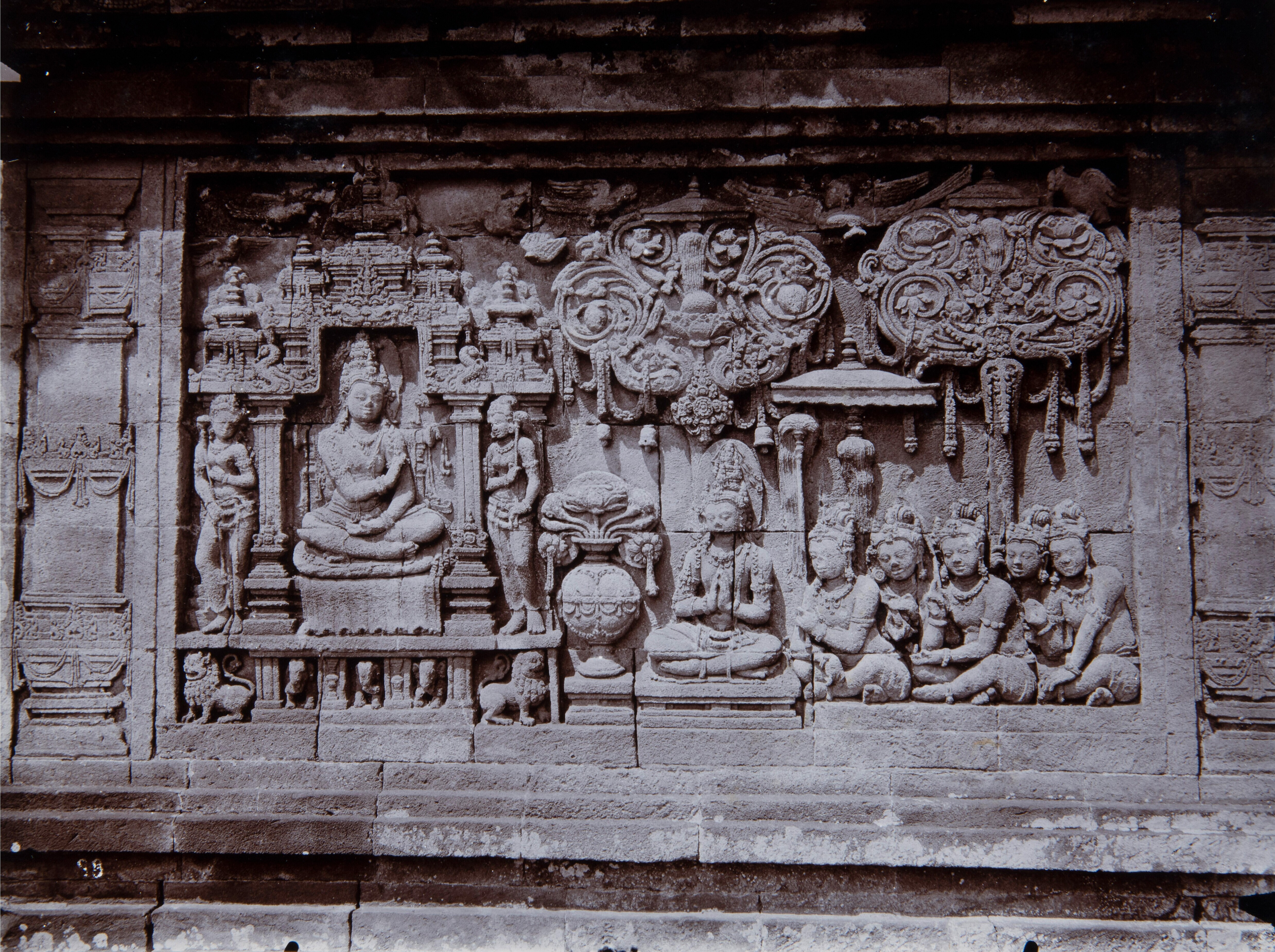 Reliëf op één van de wanden van de Borobudur op Midd...