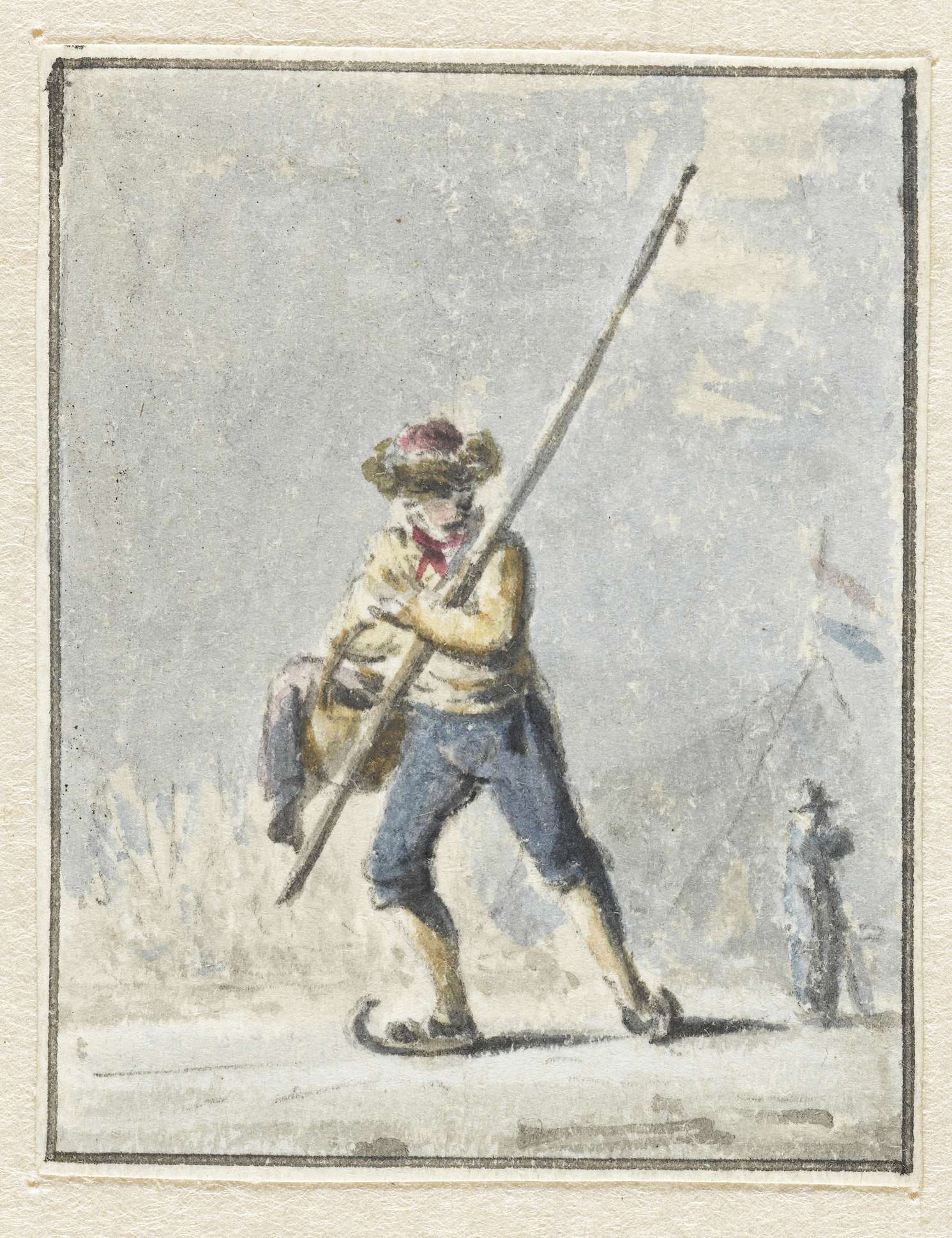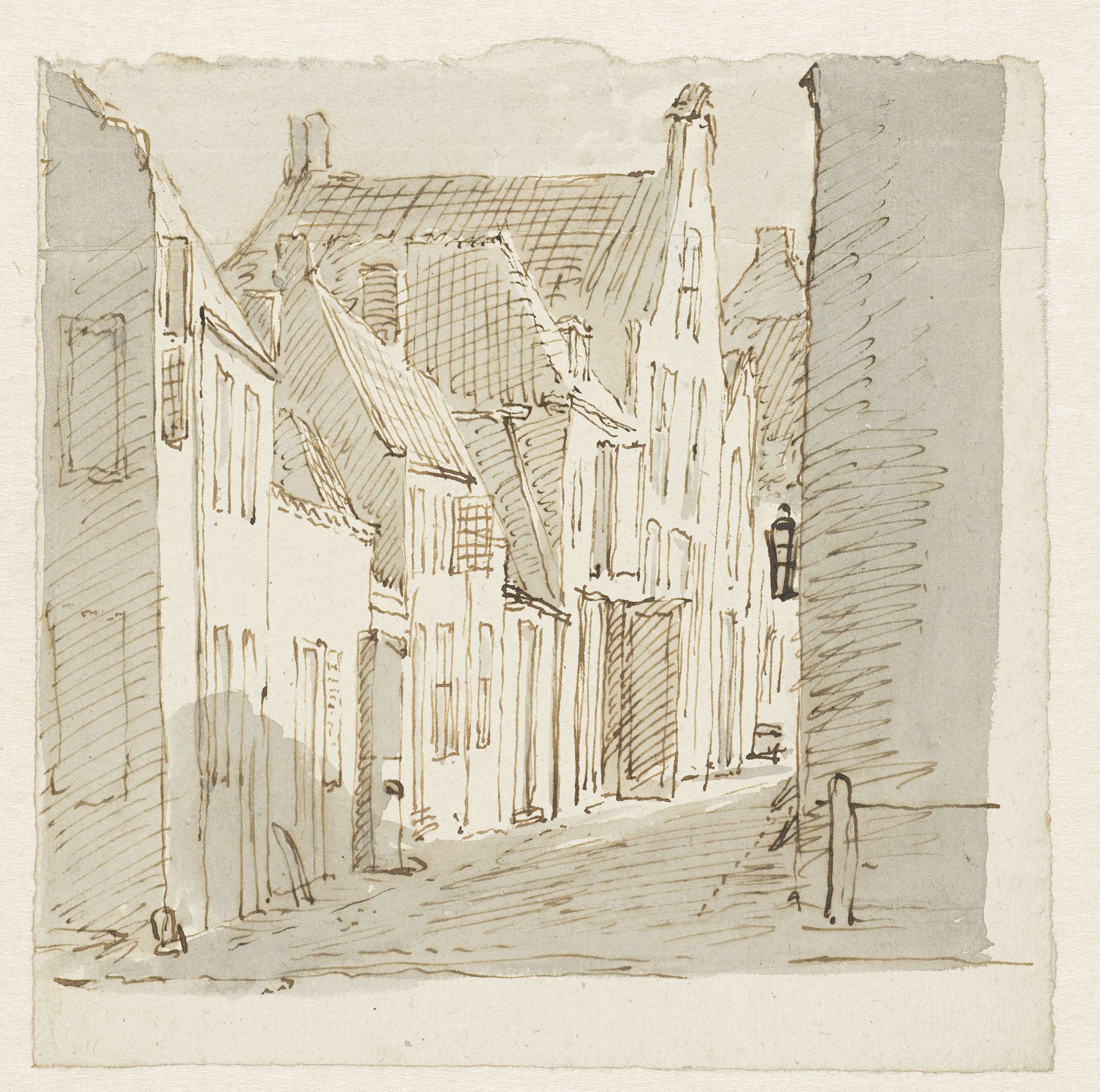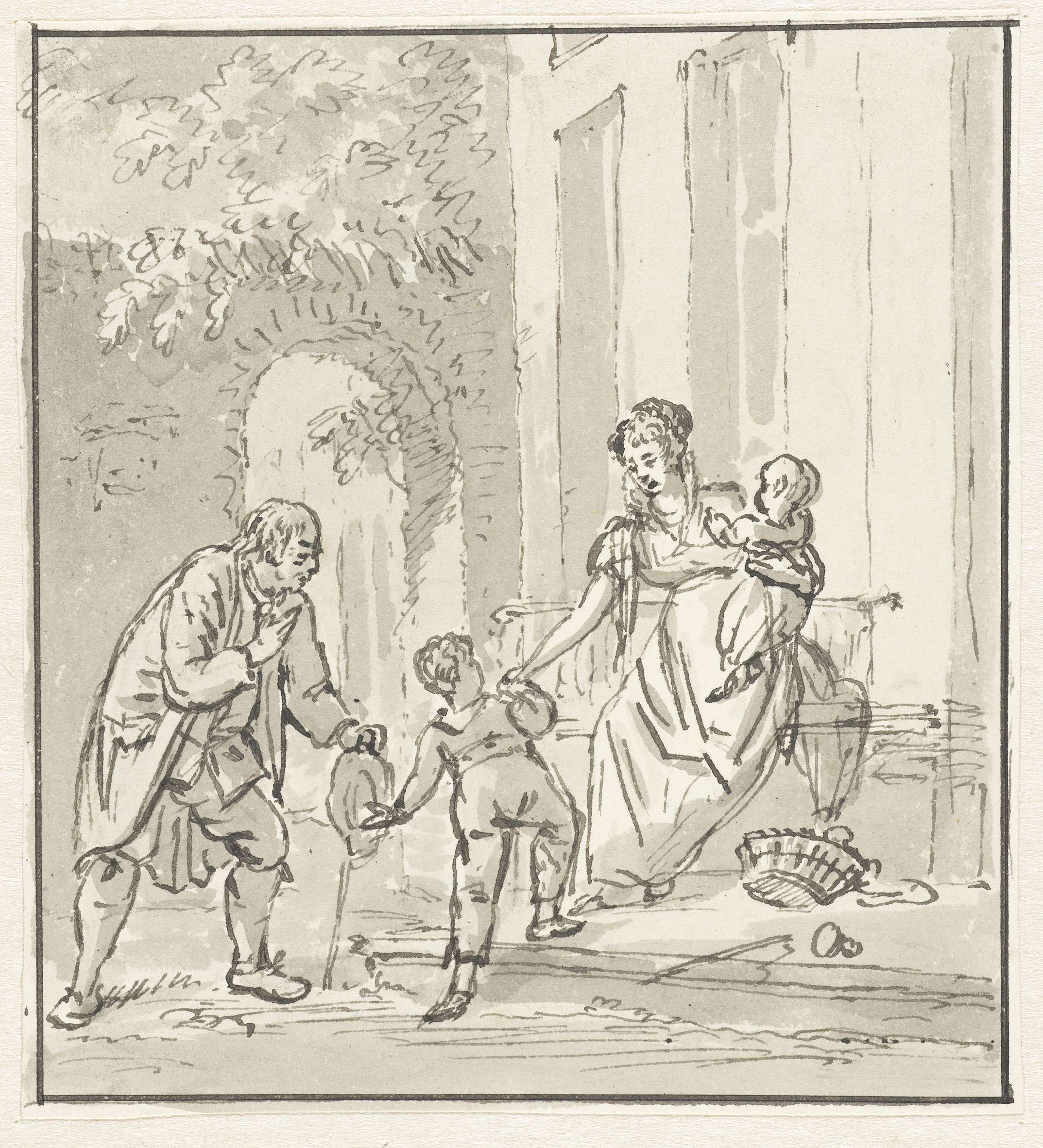 Vervallen gebouw met rechts een houtsprokkelaarster