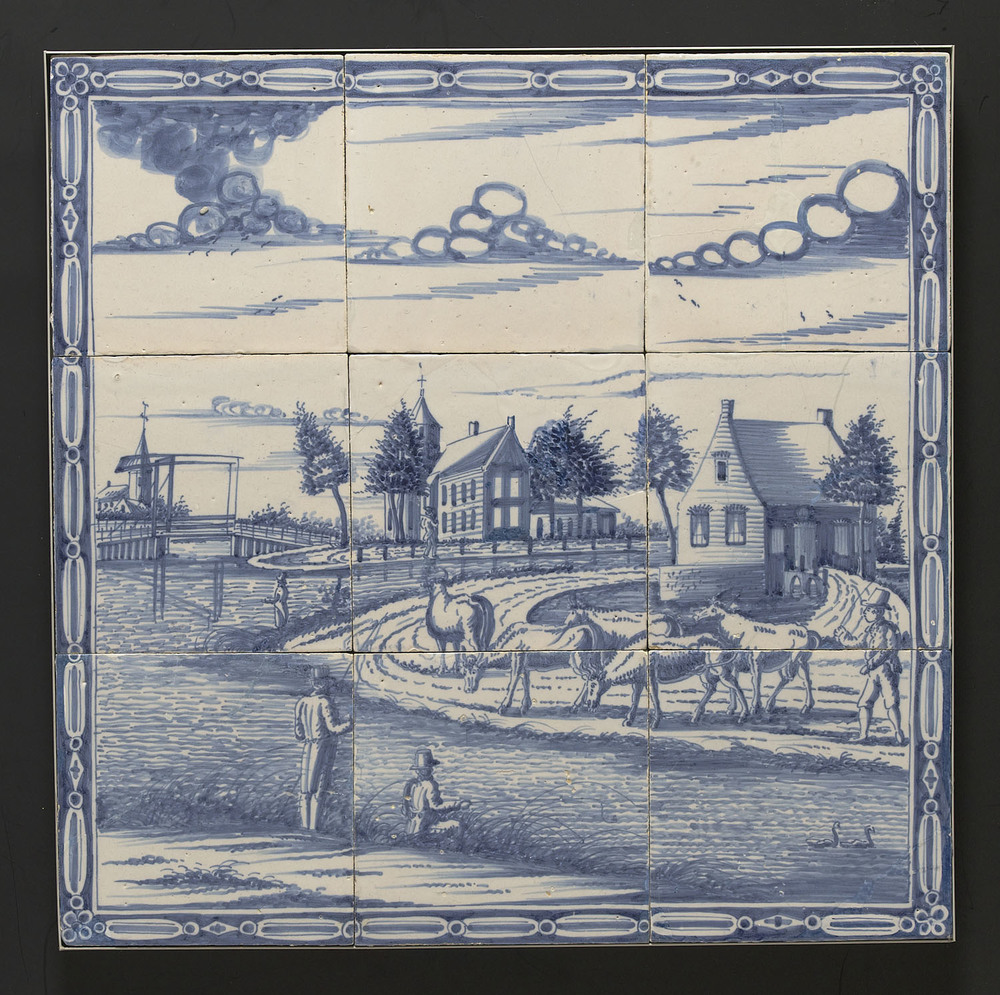 Tegeltableau van keramiek, tinglazuur, voorstellende...