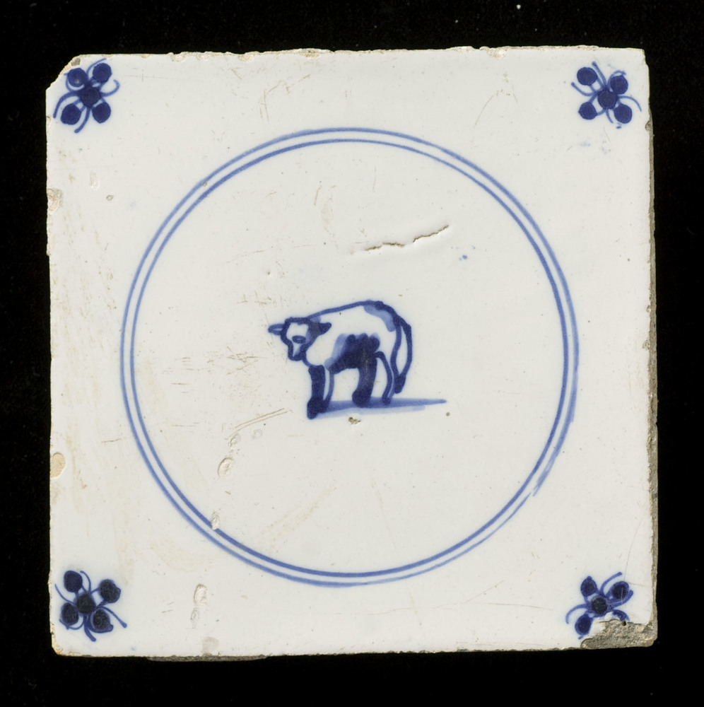 tegel van aardewerk met tinglazuur, voorstellende: l...