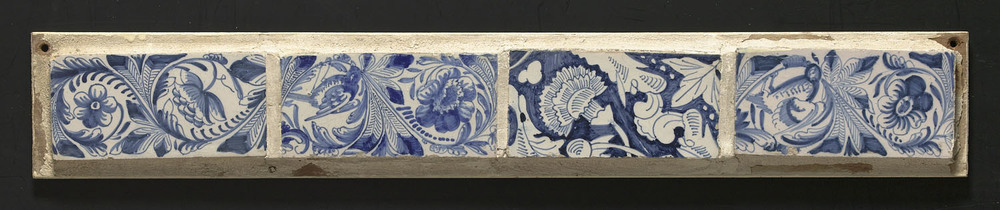 Tegelveld in tinglazuur, voorstellende een randtegel...