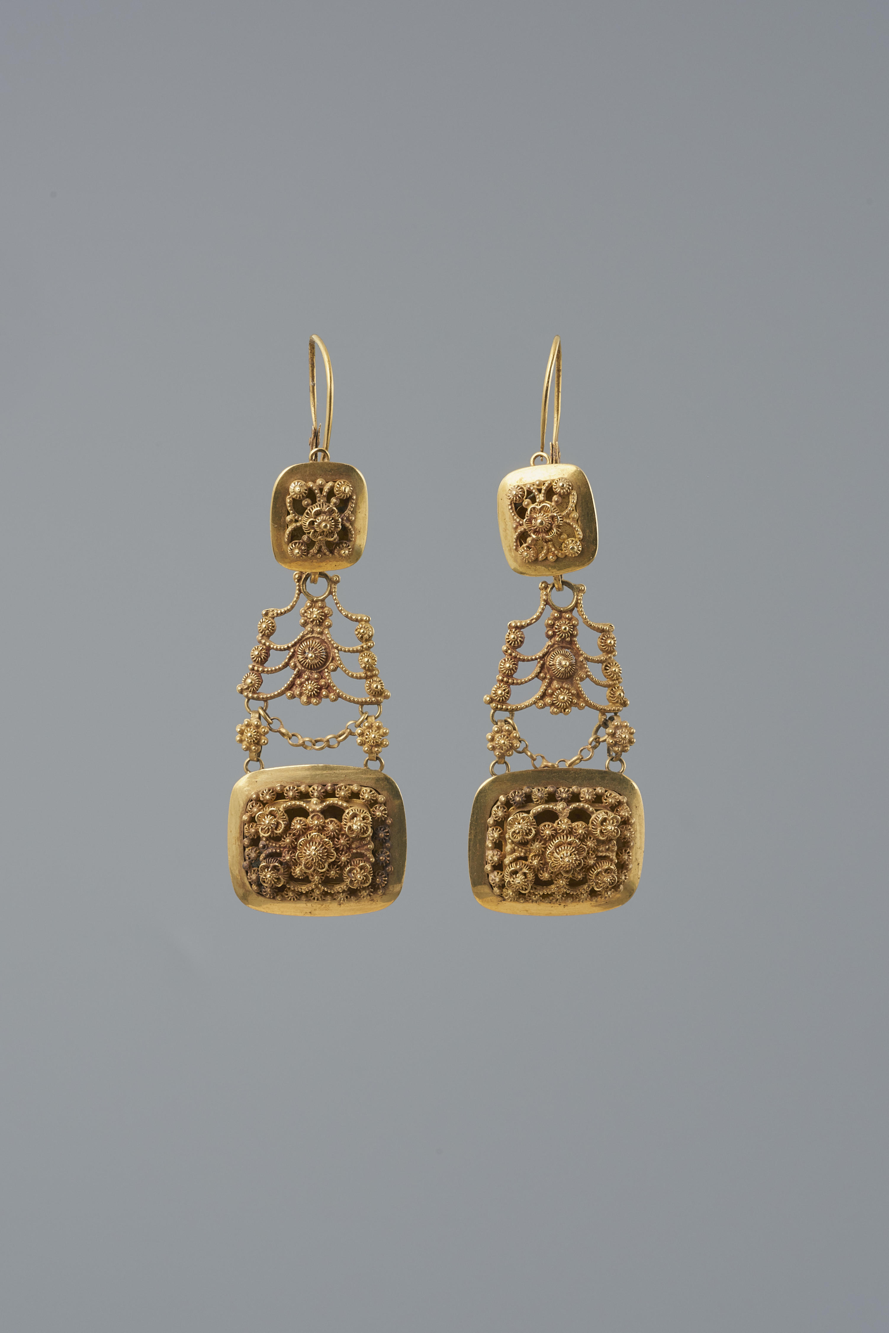 Paar gouden 'eikelbellen', Hulst, circa 1850