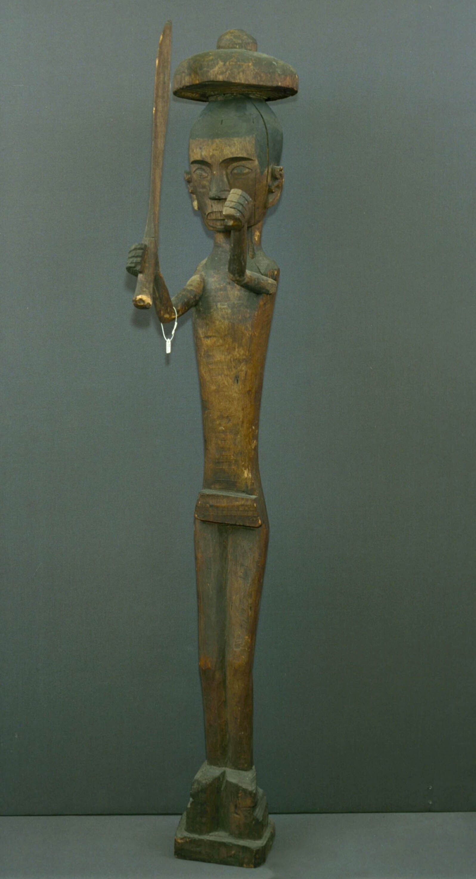 Houten beeld van een man ter afweer van ongewenste b...