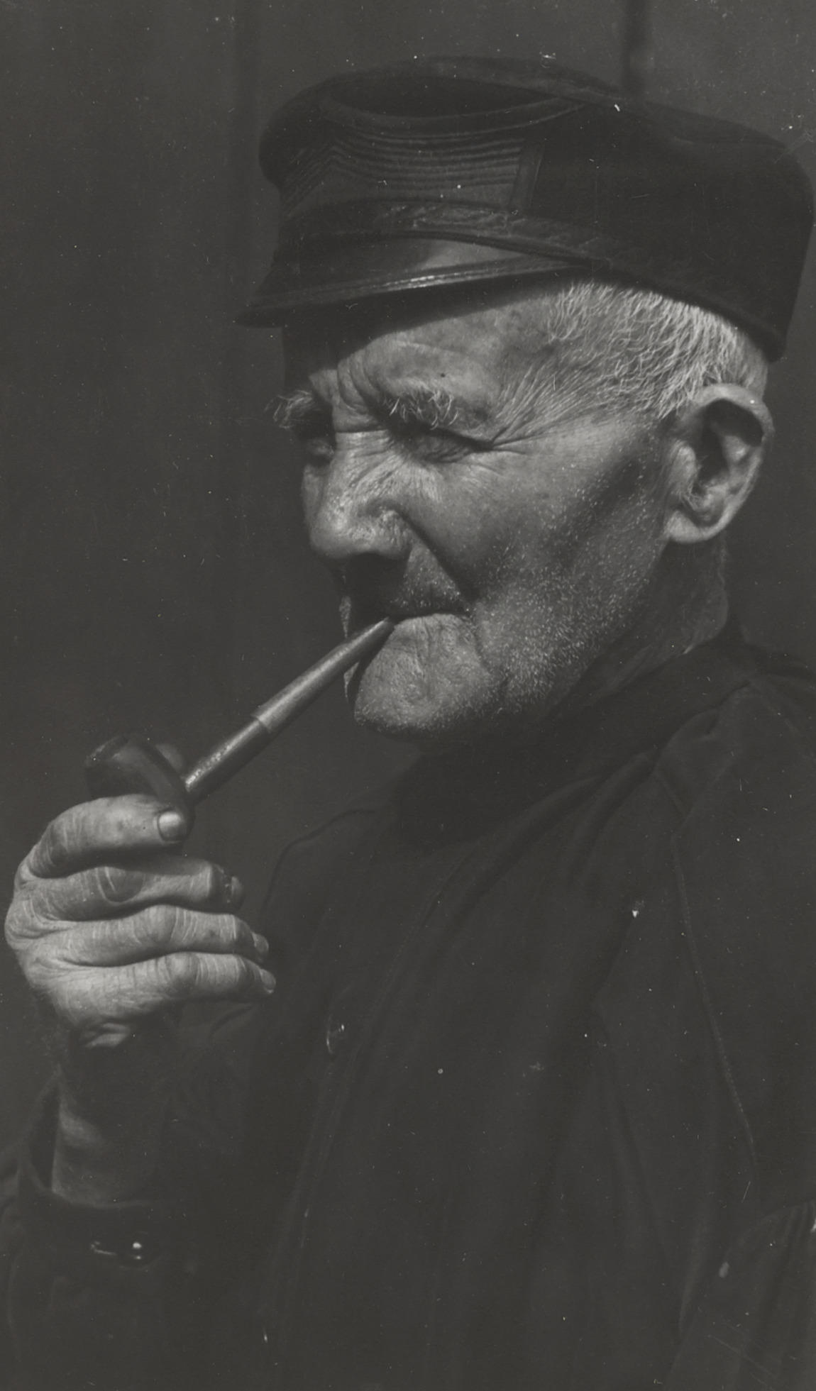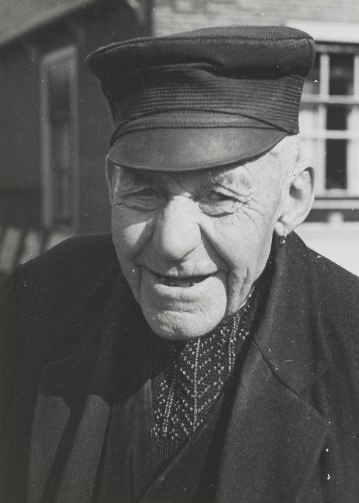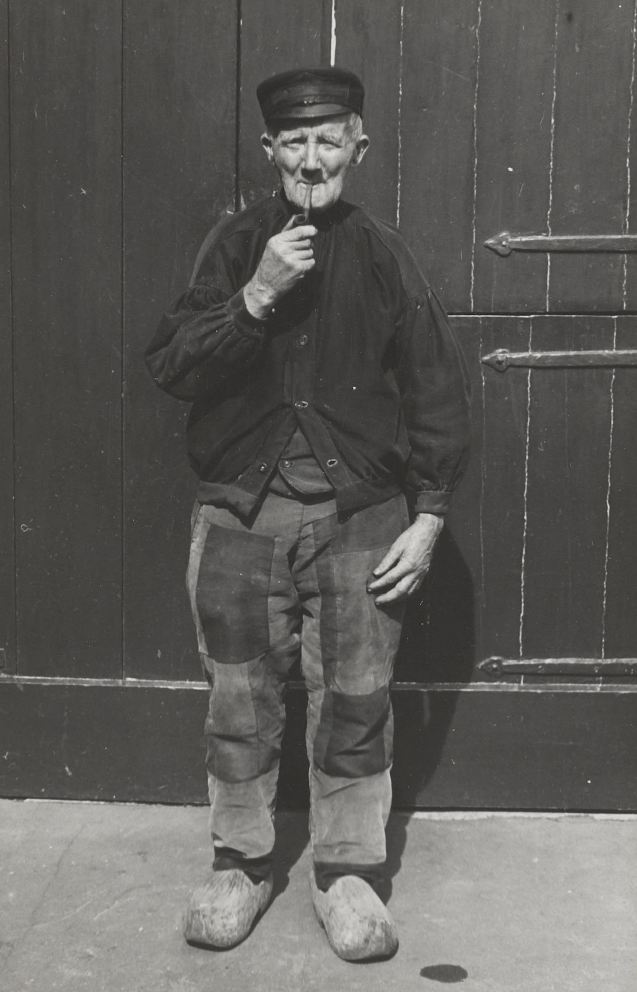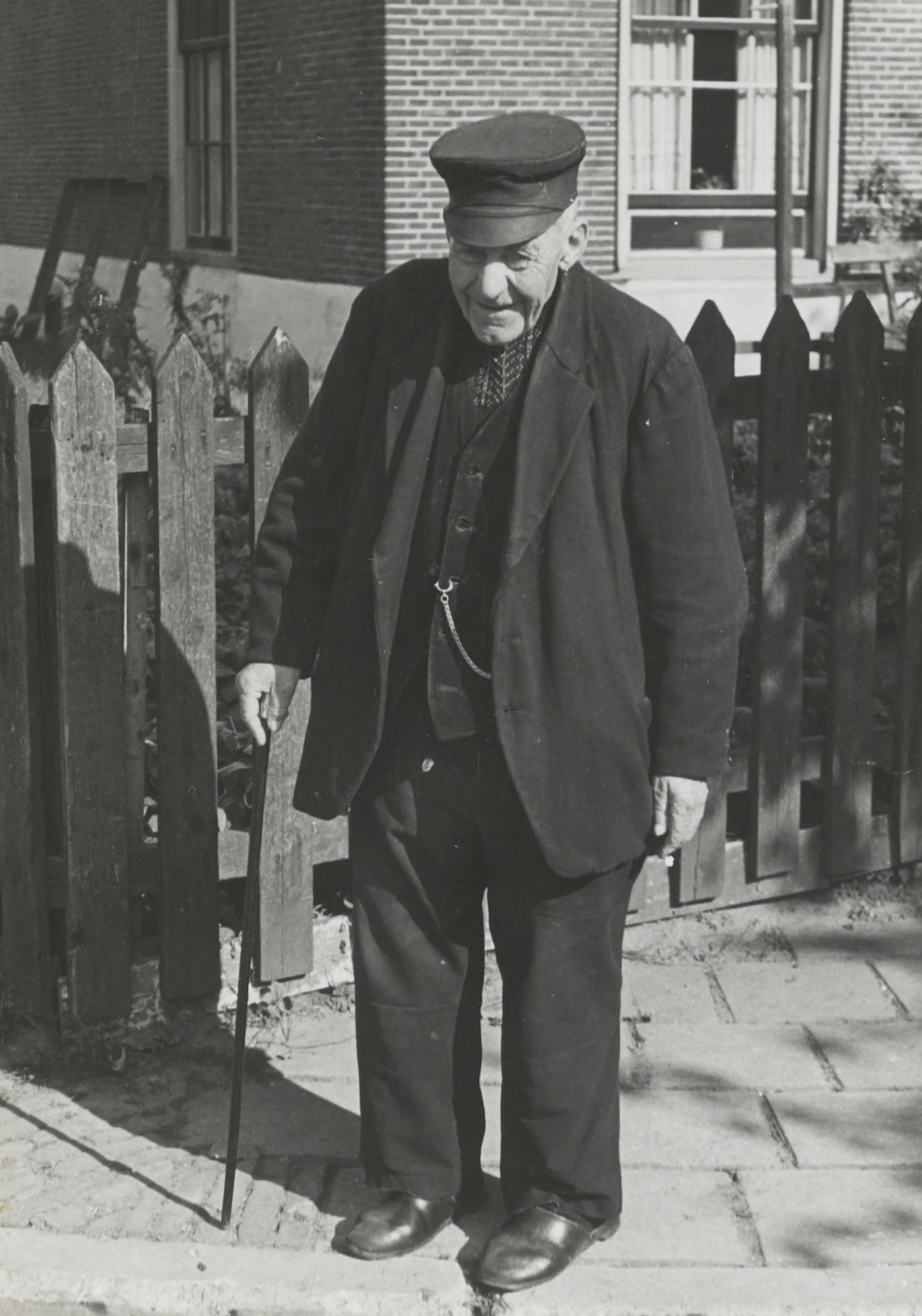 Boer in streekdracht, Huizen, 1945 (zwart-wit foto)