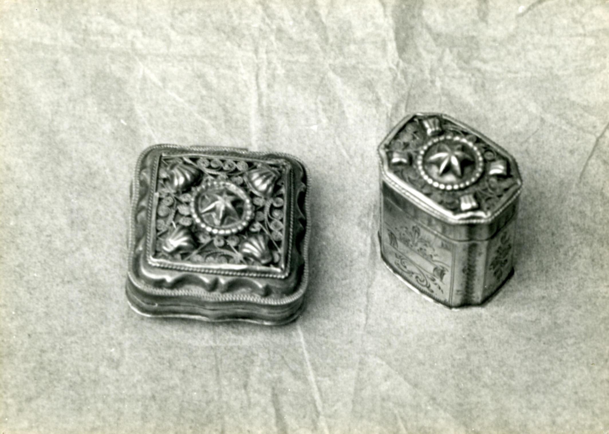 Zilveren reukdoosjes, Huizen, 1945 (zwart-wit foto)