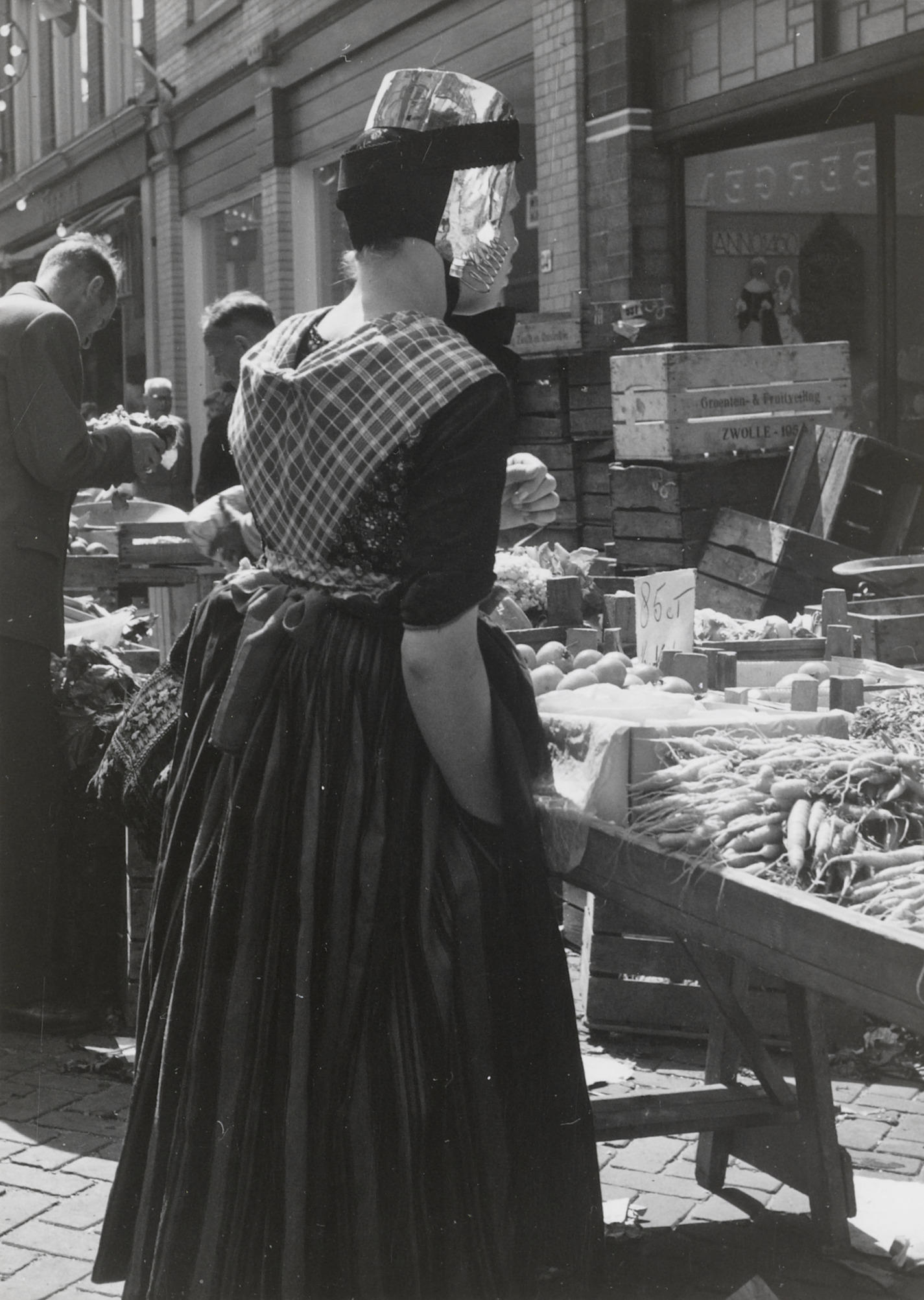 Mevrouw Konterman uit Rouveen op de markt, Meppel, 1...