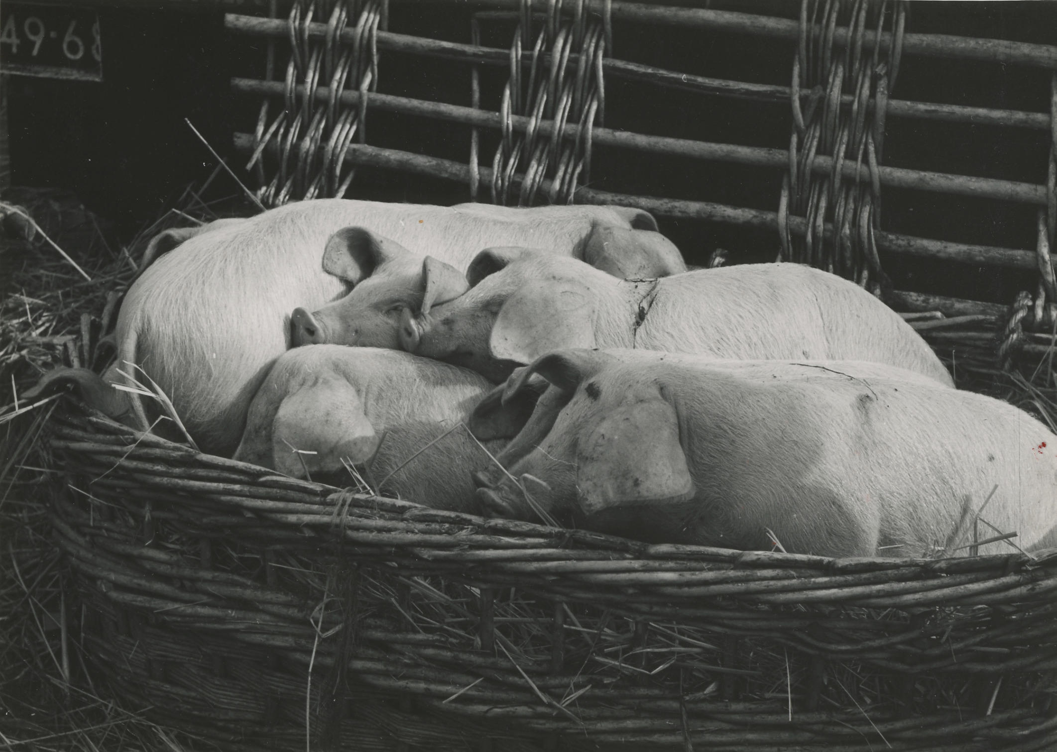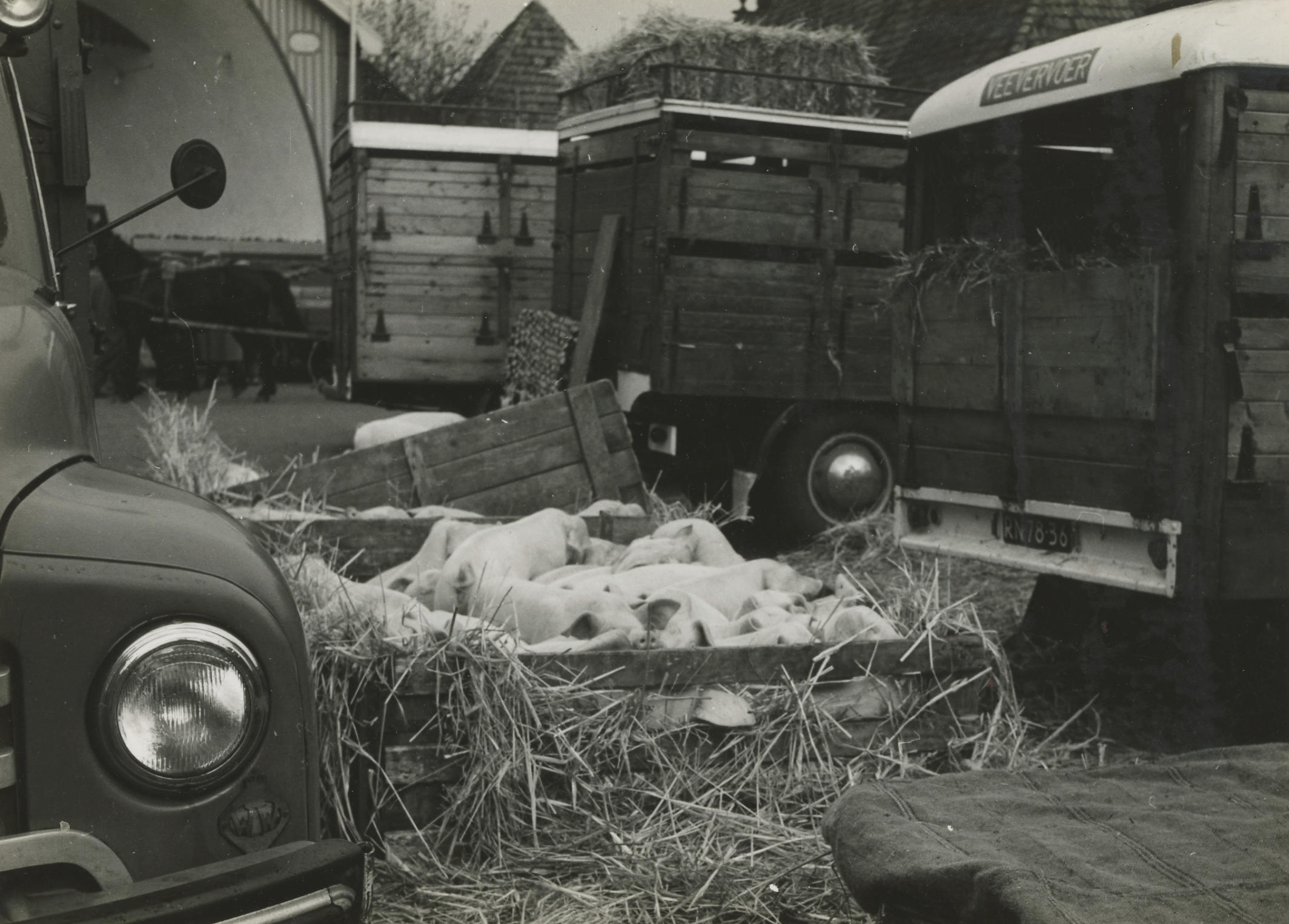 Varkensmarkt, Oldenzaal, 1960 (zwart-wit foto)