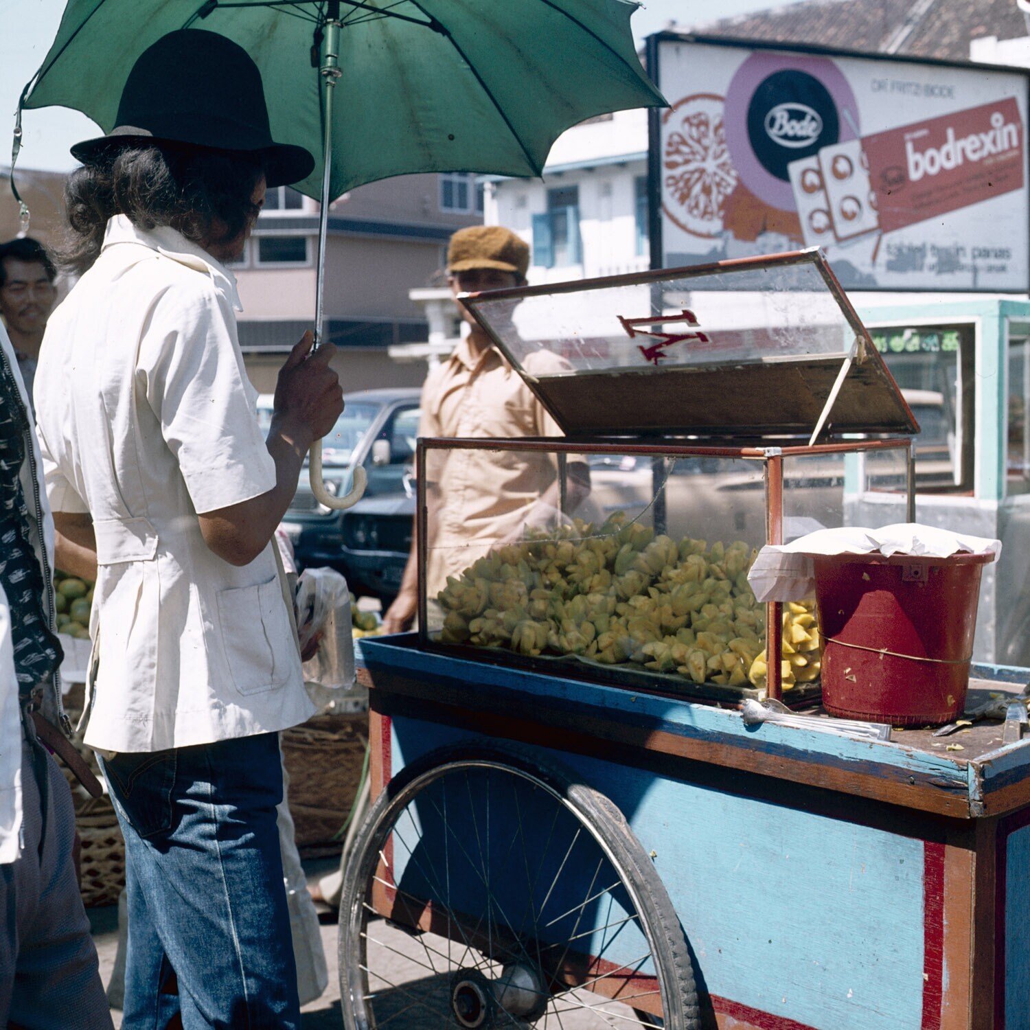 Pasar Kosambi, Bandung. Rijdend stalletje met katjan...