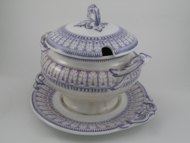 Ovale sauskom met oor van 129-delig paars servies (A...