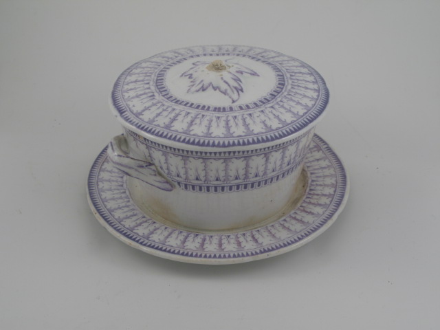 Sauskom met deksel van 129-delig paars servies, sauskom
