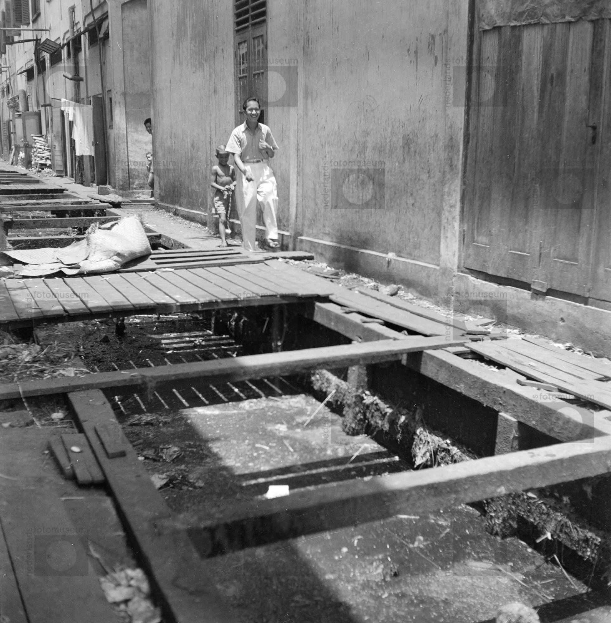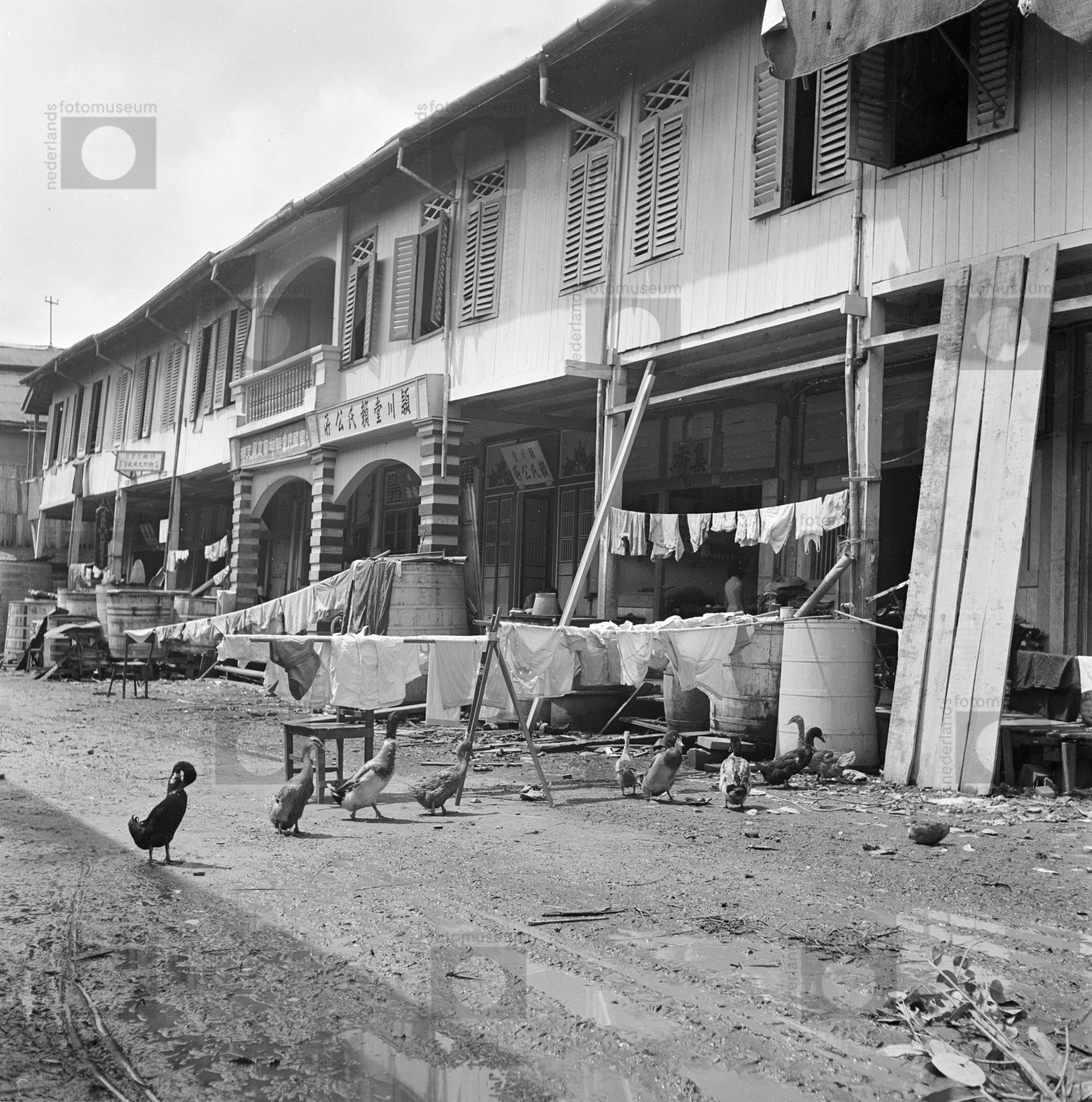 Straatgezicht met Chinese handelshuizen, Indonesië (...