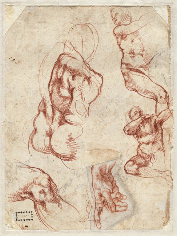 Zittend mannelijk naakt; aparte studie van het hoofd