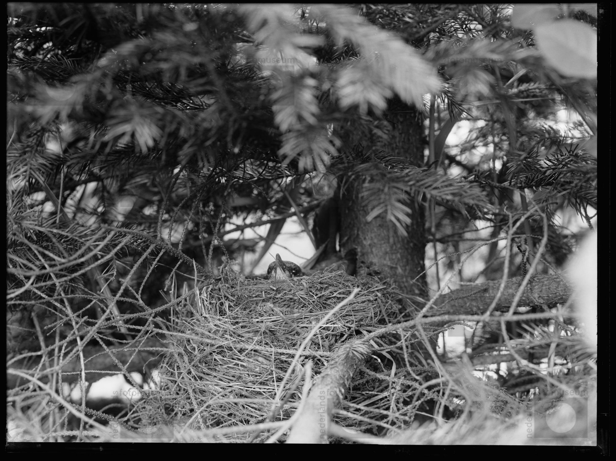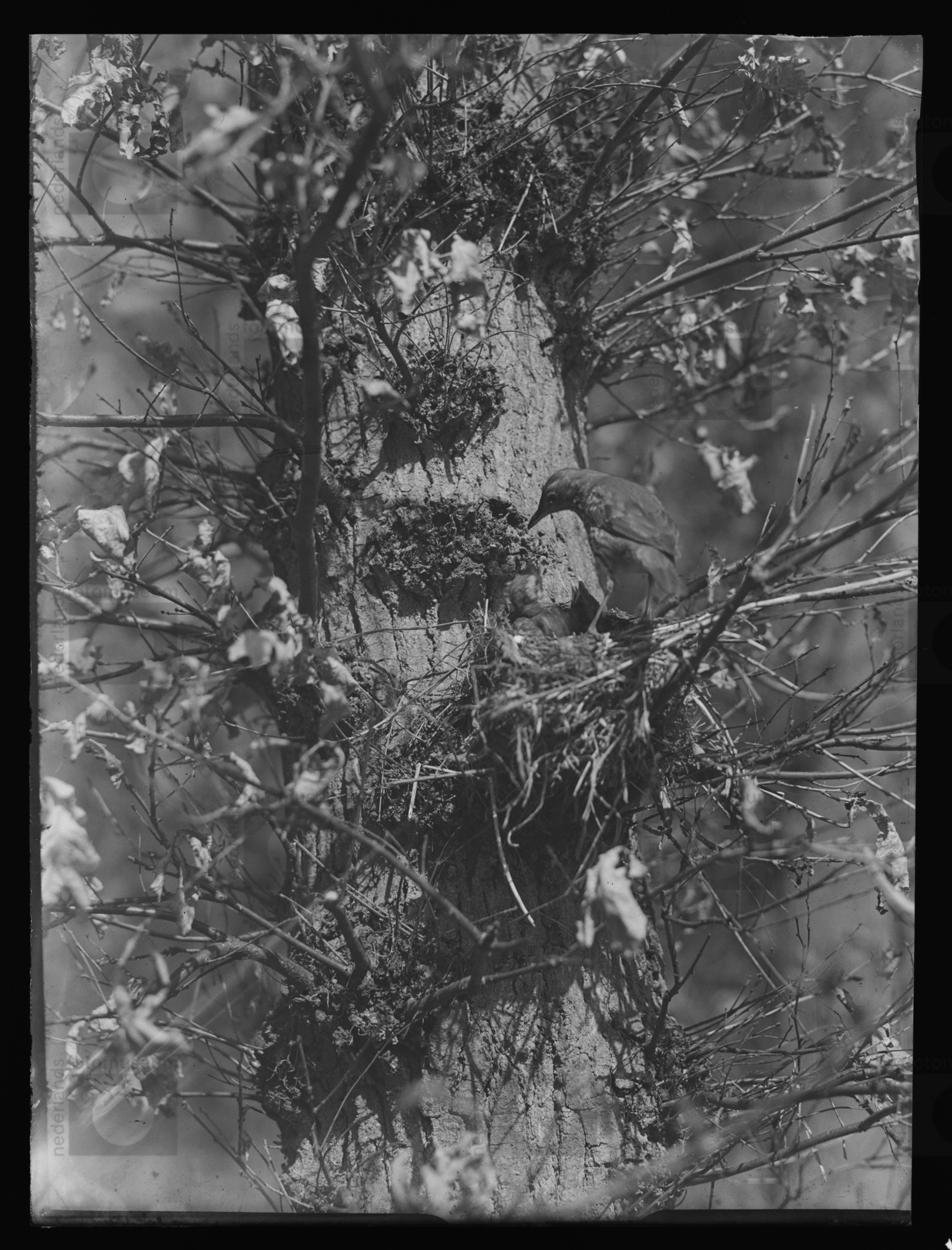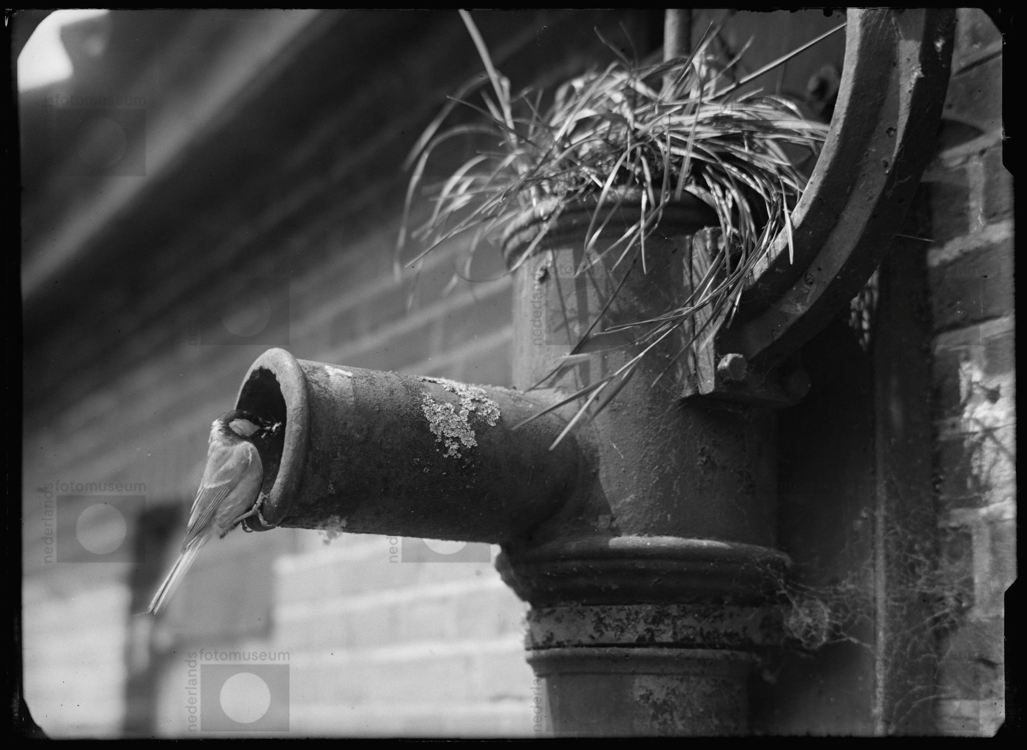 Koolmees bij nest in pomp, Beekbergen (1916)