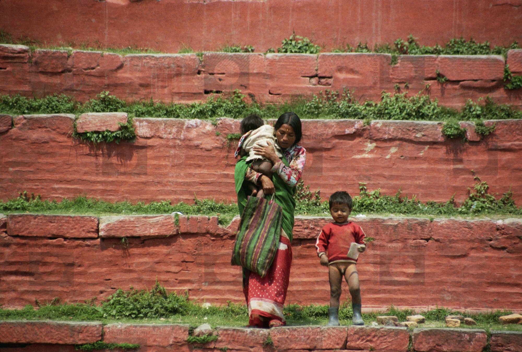 Een groep arme vrouwen en kinderen trachten in Jakar...