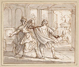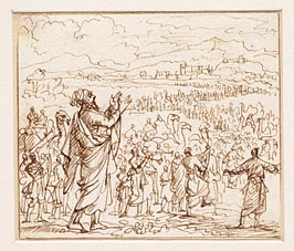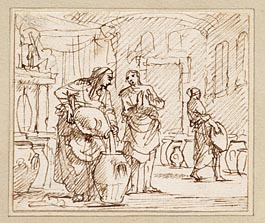 De weduwe te Zarfath en haar 2 zoons vullen vaatwerk...