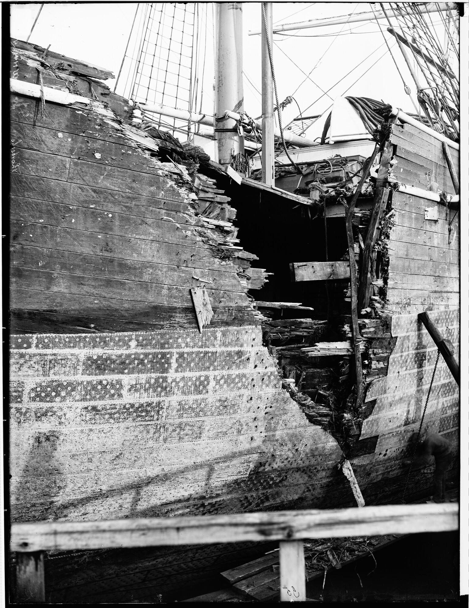 Negatief van het stalen barkschip Van Galen in aanbo...