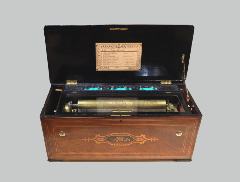 Cilinderspeeldoos met toonkam en harmonium gefabrice...