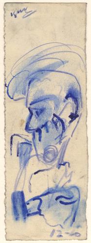 Het portret van een man, voor hem ligt een pakje sha...