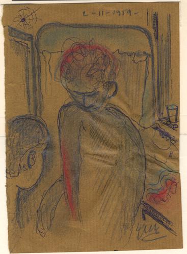 Tekening met als voorstelling, twee mensen