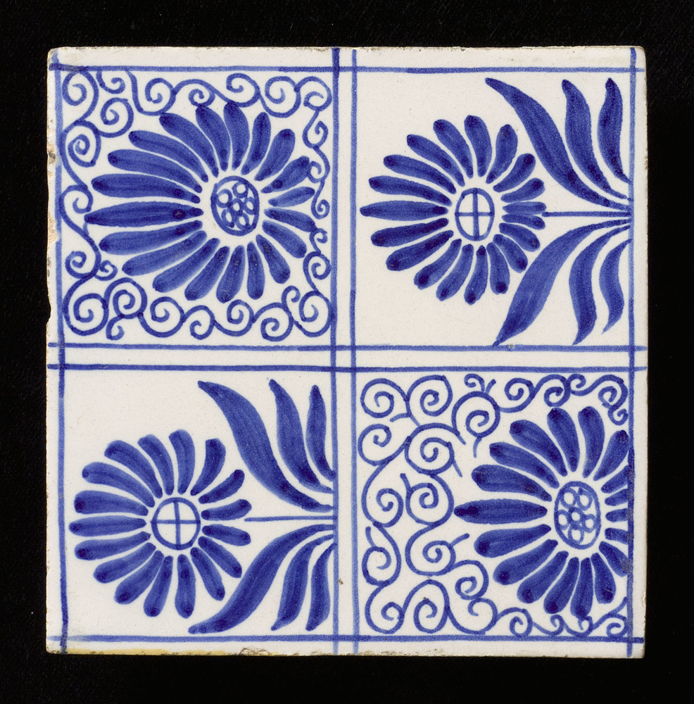 Tegel van keramiek, opglazuur, voorstellende een blo...
