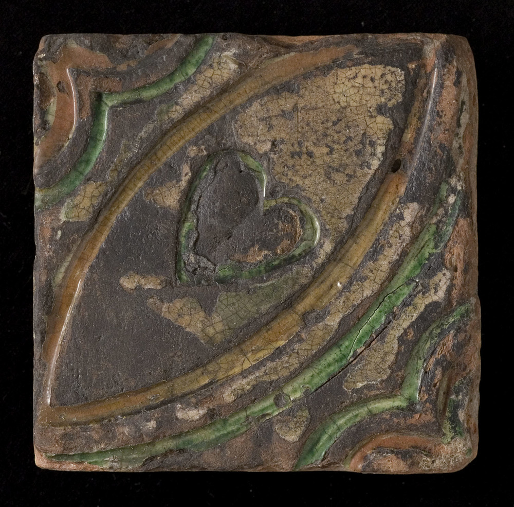 Randtegel in tinglazuur, voorstellende randhoek met ...
